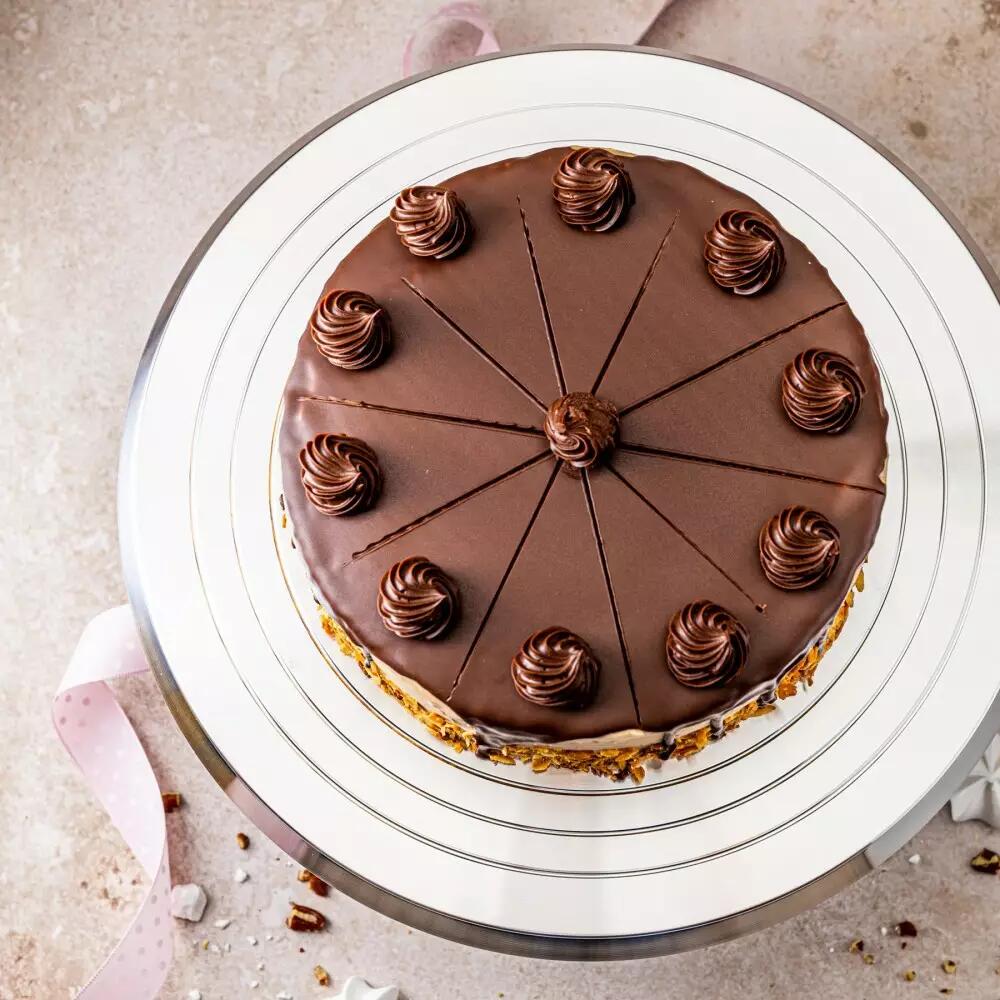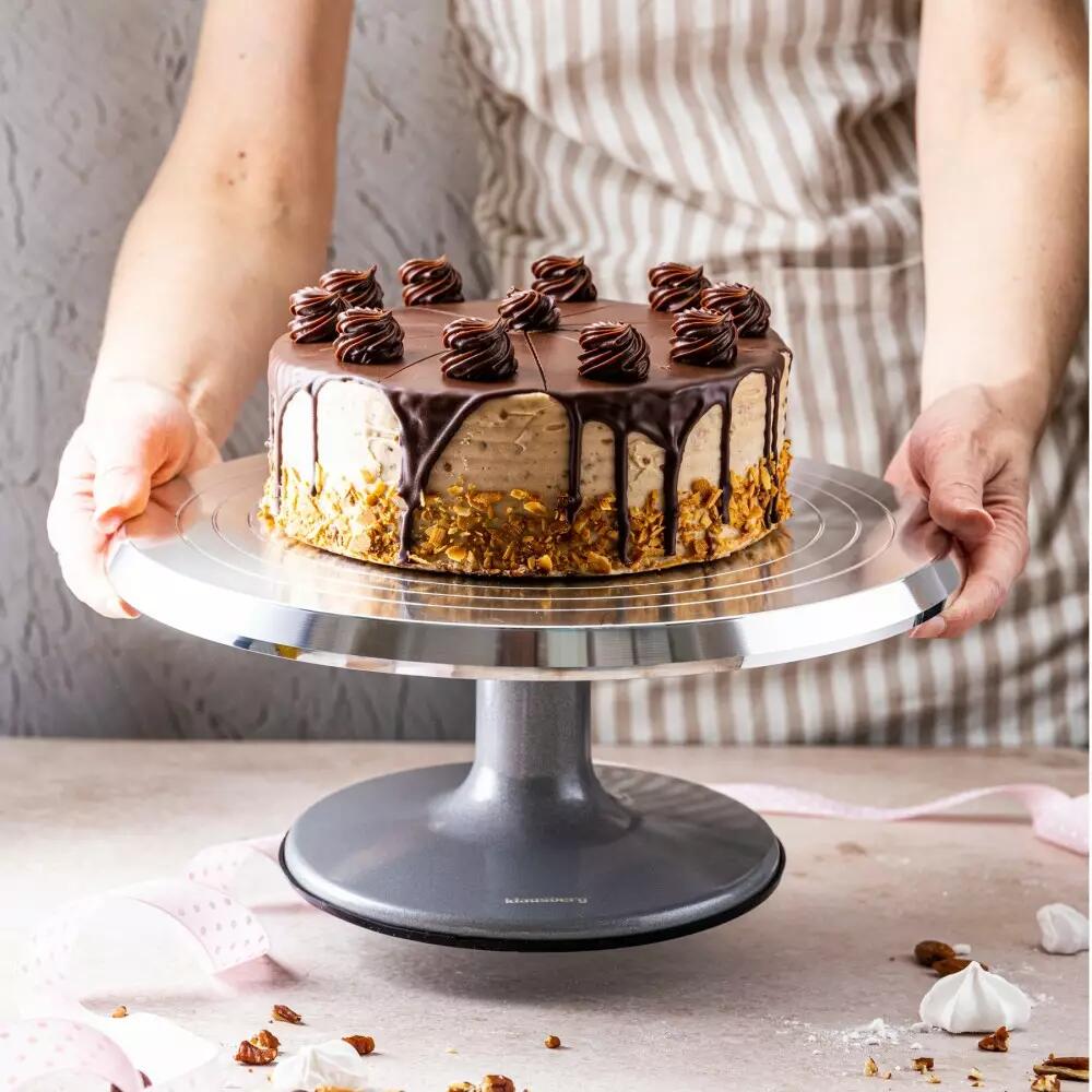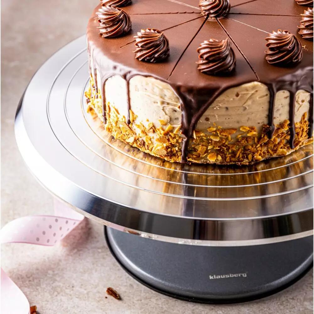 Suportul rotativ pentru tort permite accesul ușor la toate marginile tortului pentru glazură și apoi servire.