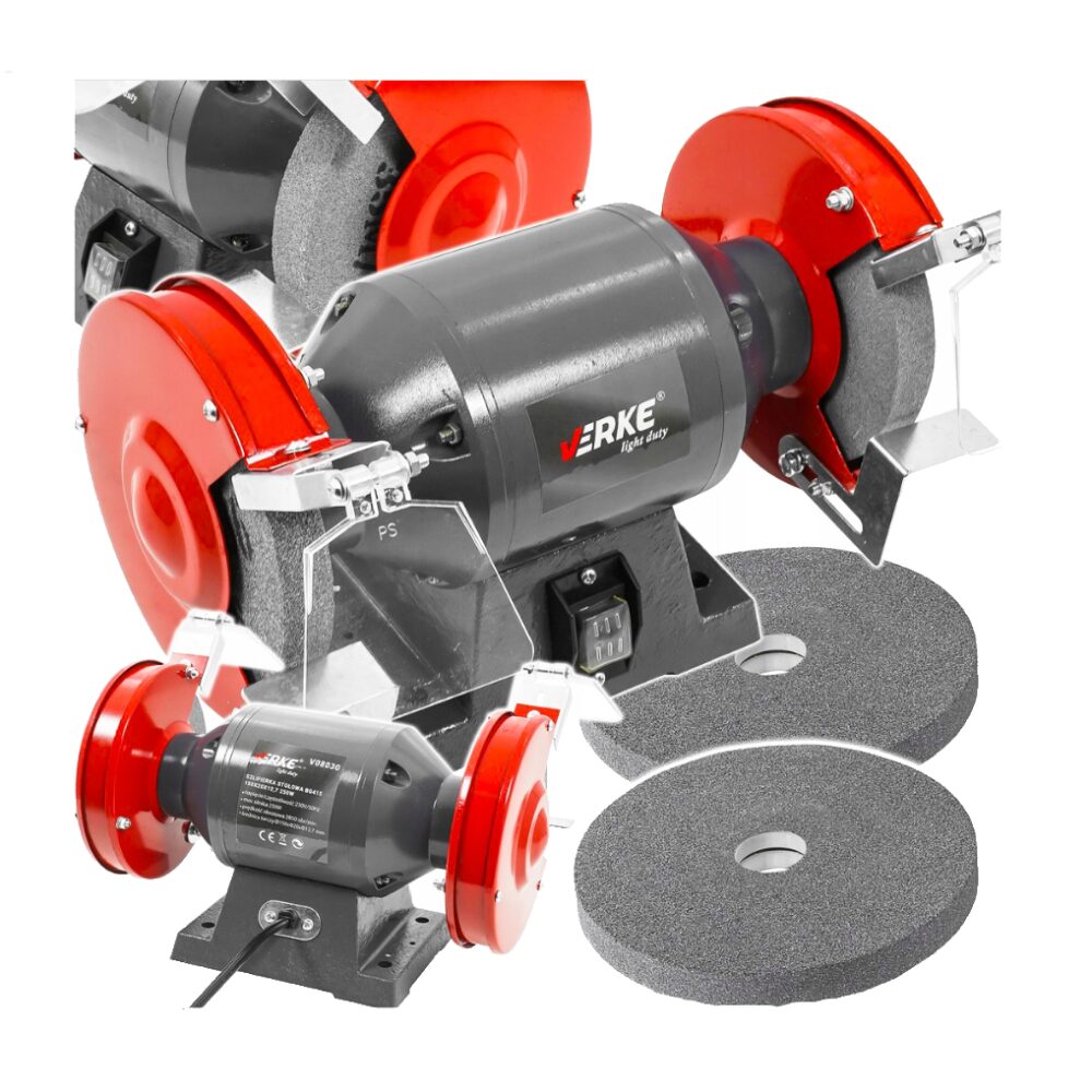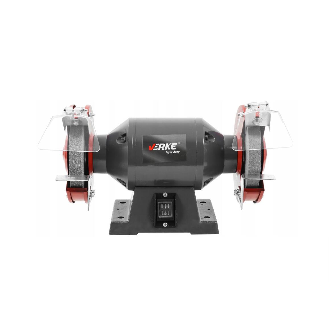 Polizorul are discuri reglabile, pentru a proteja împotriva scânteilor și stropilor, precum și picioare de cauciuc care oferă suport sigur și atenuează vibrațiile. Capacele sunt din metal turnat.