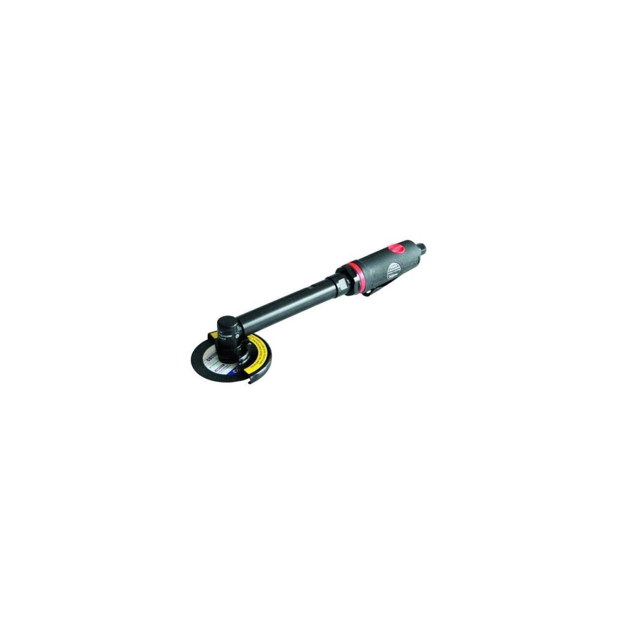 Polizor unghiular pneumatic cu disc de șlefuit mic și gât lung, ideal pentru lucrări grele în spații înguste.