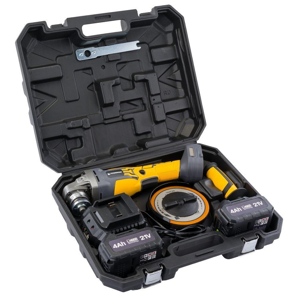 Polizorul este echipat cu două baterii litiu-ion de 21V cu o capacitate mare de 4000 mAh.