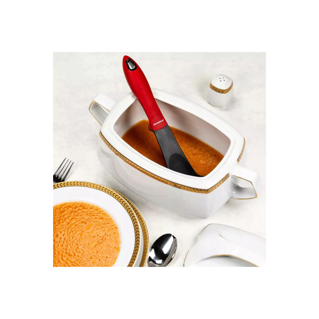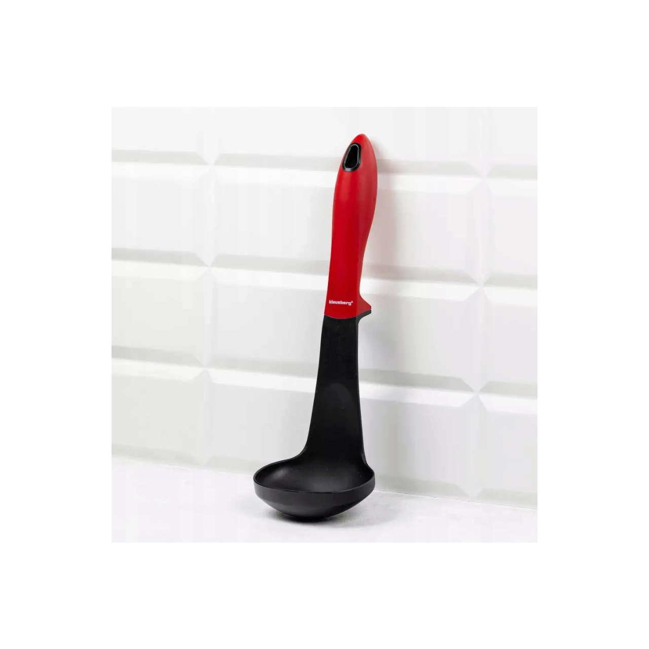 Forma practica de la imbinarea manerului permite ustensilului sa se sprijine pe marginea oalei.