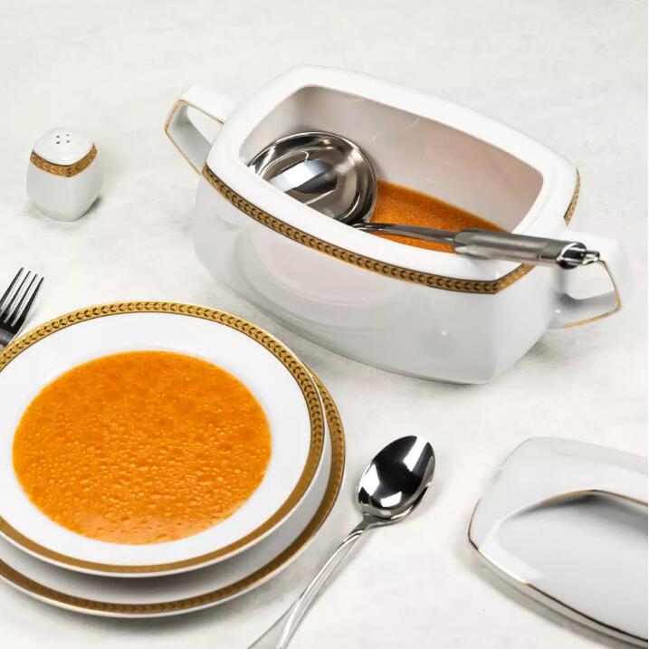 Forma special profilată este potrivită pentru aplicarea de sosuri, supe, cărnuri și legume.