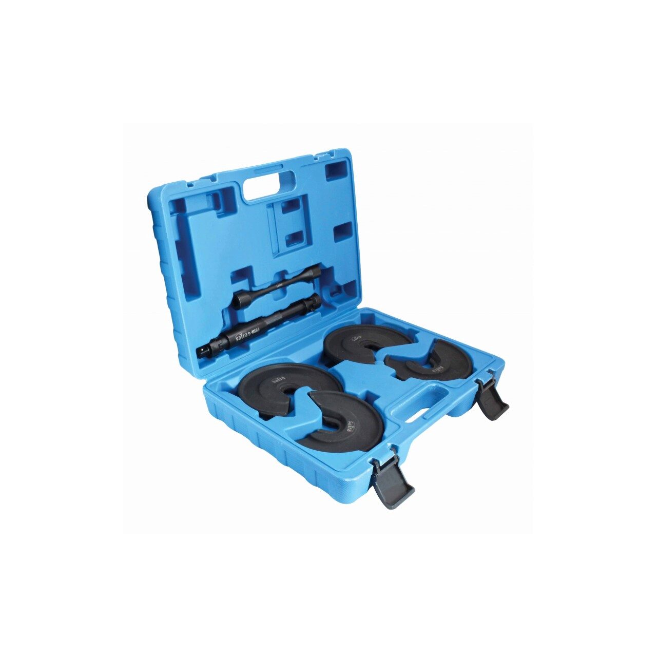 Un set inovator de unelte adaptate pentru îndepărtarea arcurilor brațelor la majoritatea mașinilor cu suspensie de braț față și spate.