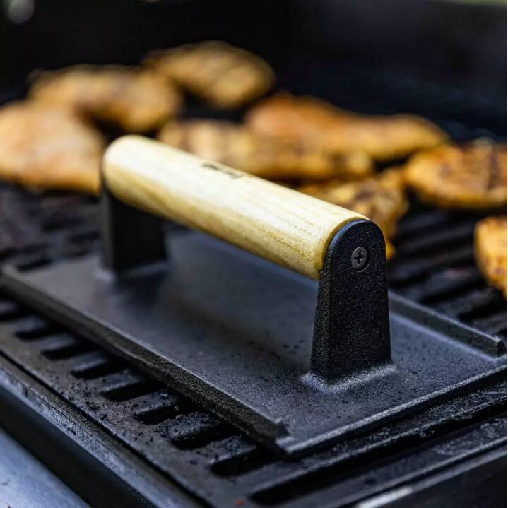 Presă pentru carne din fontă, de exemplu pentru hamburgeri, fripturi, slănină și chiar pâine.