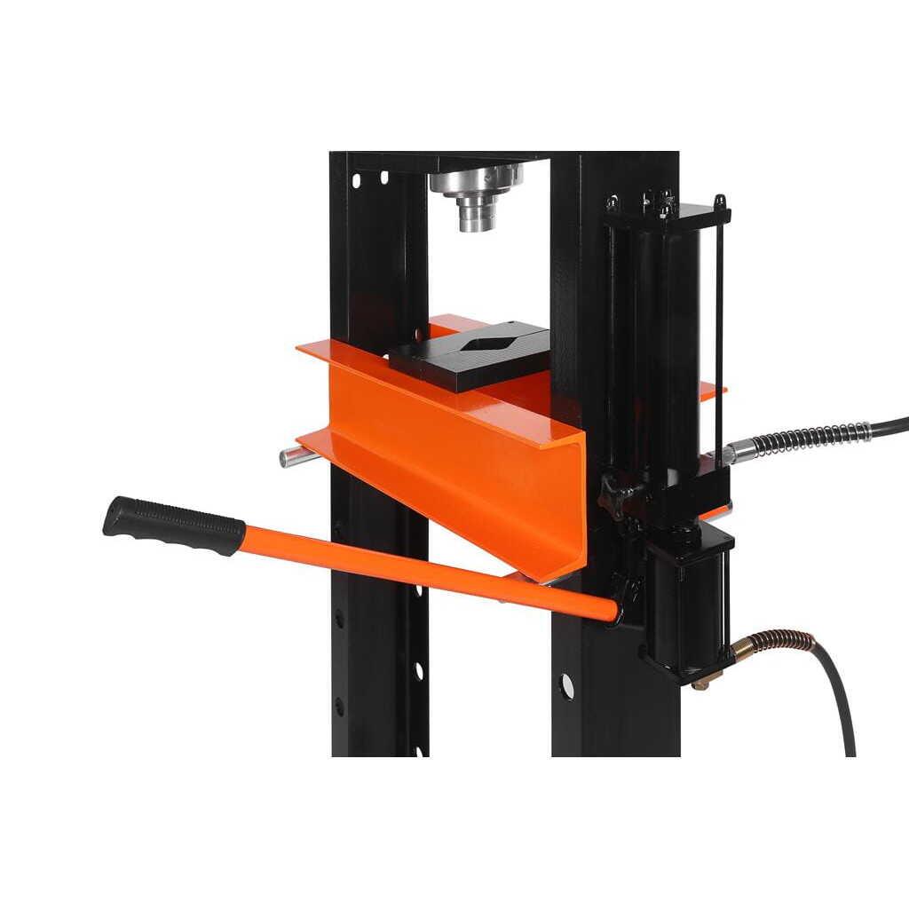 Raftul de lucru reglabil pe 8 niveluri vă permite să adaptați spațiul de lucru la nevoile curente. Cursa mare a pistonului și presiunea de 30 de tone permit presarea, îndreptarea sau asamblarea convenabilă a elementelor care necesită o forță de presiune ridicată.