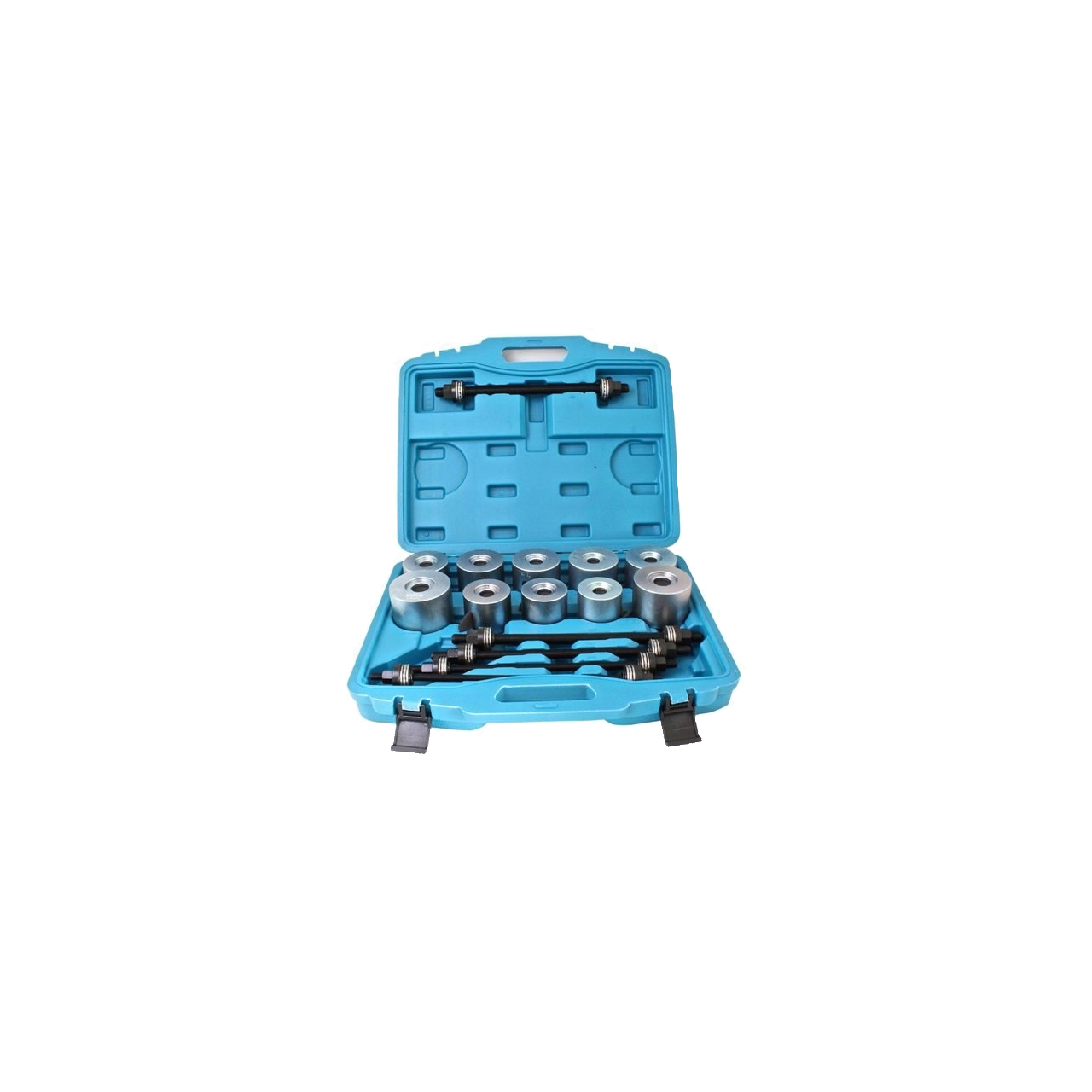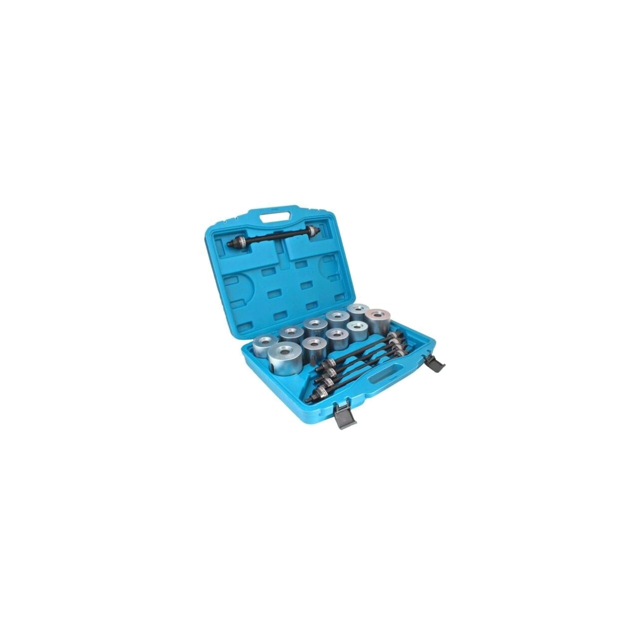 Setul poate fi folosit și ca adaptoare pentru prese hidraulice la extrudarea rulmenților si bucșelor. Setul este utilizat pentru montarea și demontarea rulmenților în articulații de direcție și bucșe de suspensie. Setul include o presa cu surub si adaptoare. Totul într- o valiză elegantă .