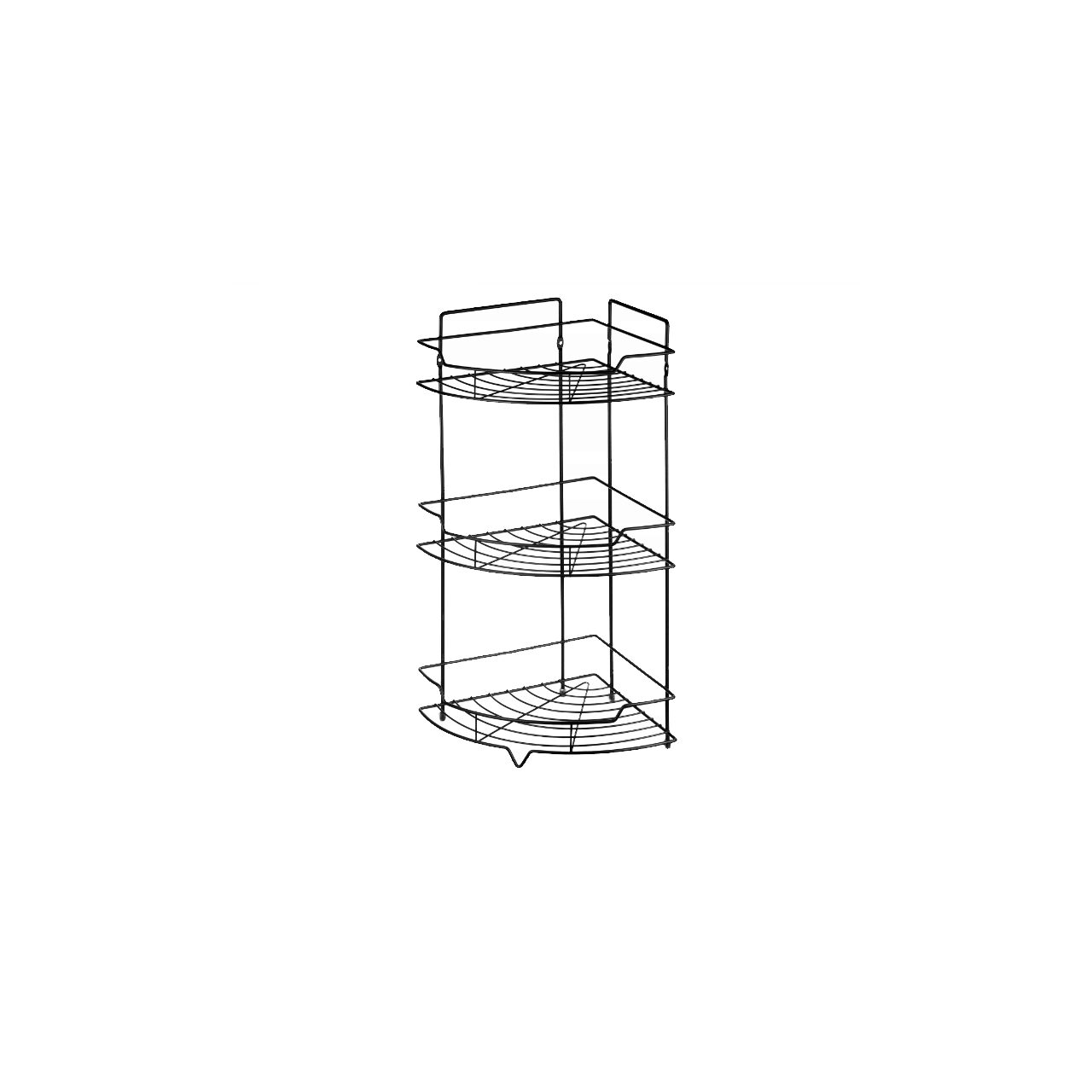 Raft metalic pentru baie pe colt cu 3 etajere, negru Sepio