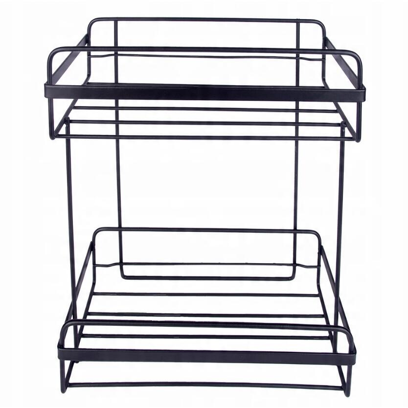 Raft pentru baie cu doua polite, metalic, prindere pe perete, Negru, Sepio