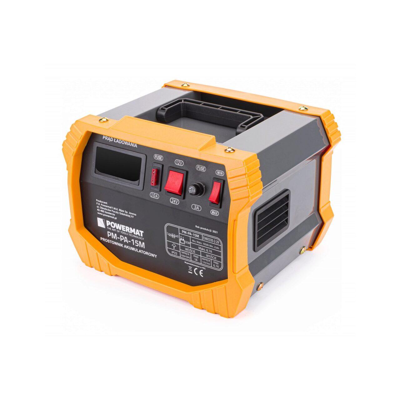 Încărcător de baterie automat și precis de înaltă calitate POWERMAT PM-PA-15M . Funcționează excelent în serviciile profesionale și atelierele auto, precum și în garajele de acasă. Dispozitivul se poate încărca cu 12V și 24V.