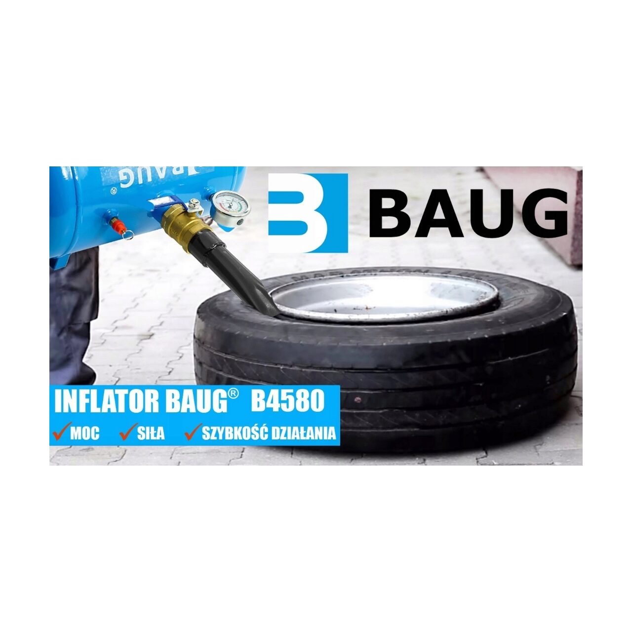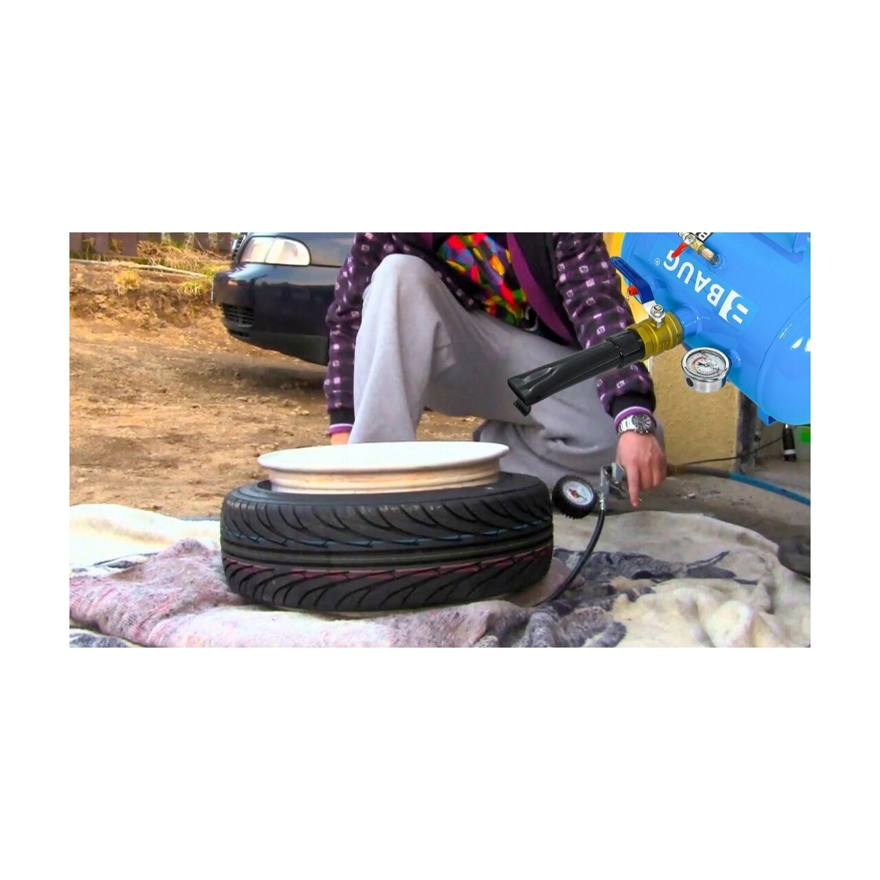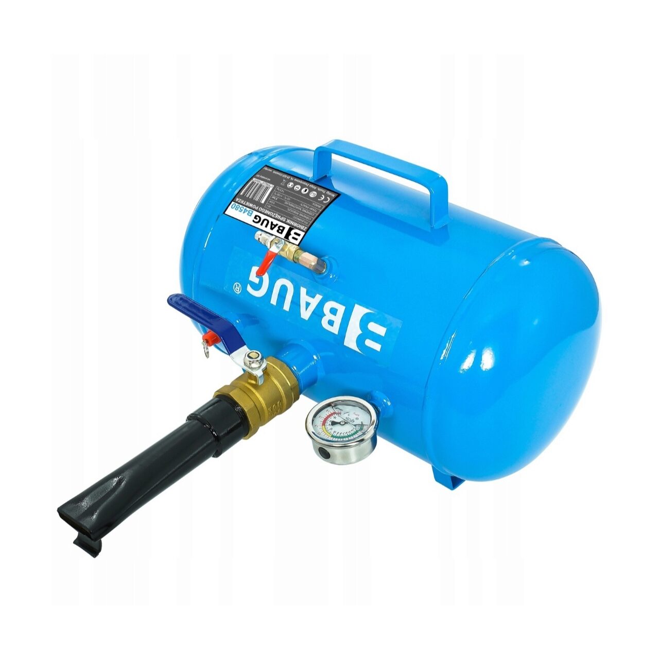 INFLATORUL oferit este echipamentul perfect pentru atelierele auto și instalațiile de vulcanizare. Este folosit pentru umflarea prin impact a anvelopelor fără cameră în procesul de montare a anvelopei pe jantă. O lovitură de la umflator etanșează anvelopa pe jantă, astfel încât să putem umfla roata la presiunea prescrisă. Umflatorul poate fi folosit pentru roțile autoturismelor, furgonetelor și camioanelor.Gomator echipat cu rezervor sub presiune cu o capacitate de 40 litri, iar manerul montat pe acesta va facilita manevrarea aparatului. Întregul lucru este realizat din materiale durabile și rezistente la deteriorare, ceea ce ne va permite utilizarea pe termen lung. Un element important al dispozitivului este supapa de siguranță care controlează presiunea din rezervor. Pe de altă parte, un manometru clar și lizibil va arăta presiunea curentă a aerului pompat.