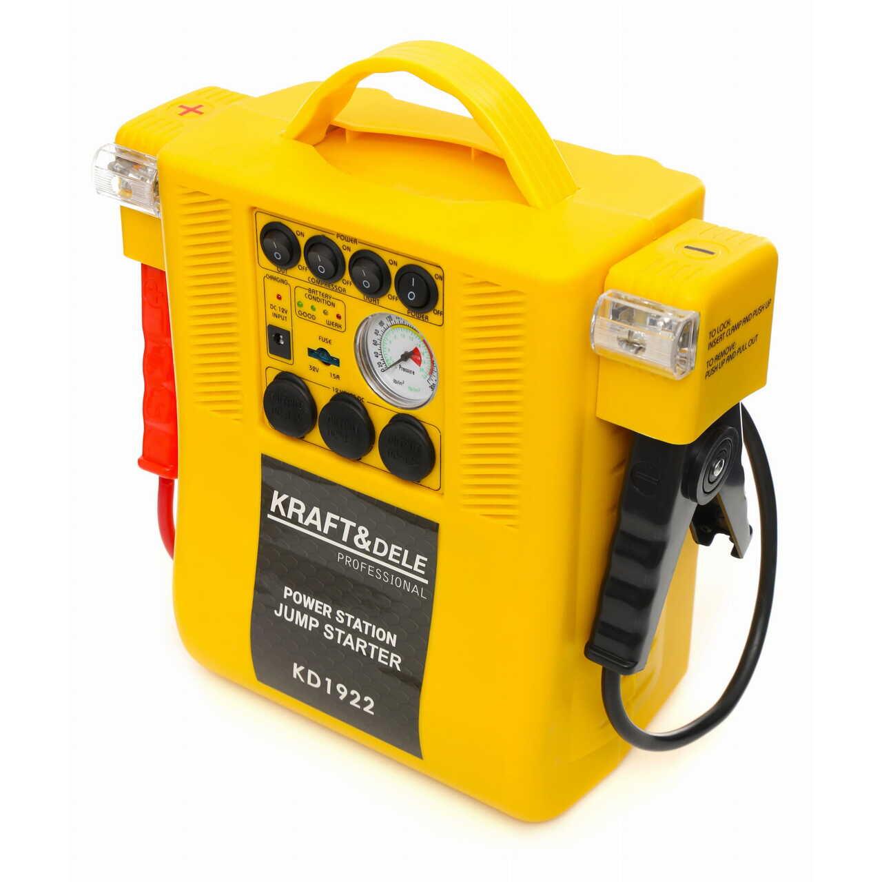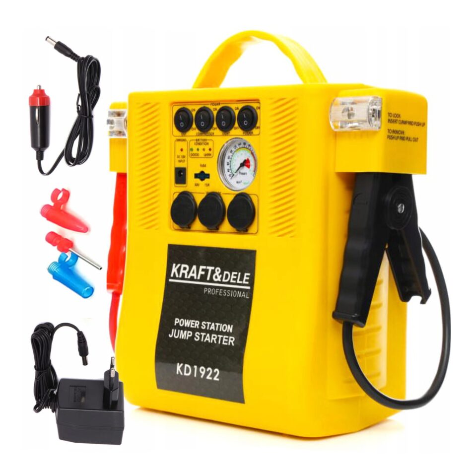 - Funcții: pornire electrică, sursă de alimentare 12V, lanternă, compresor