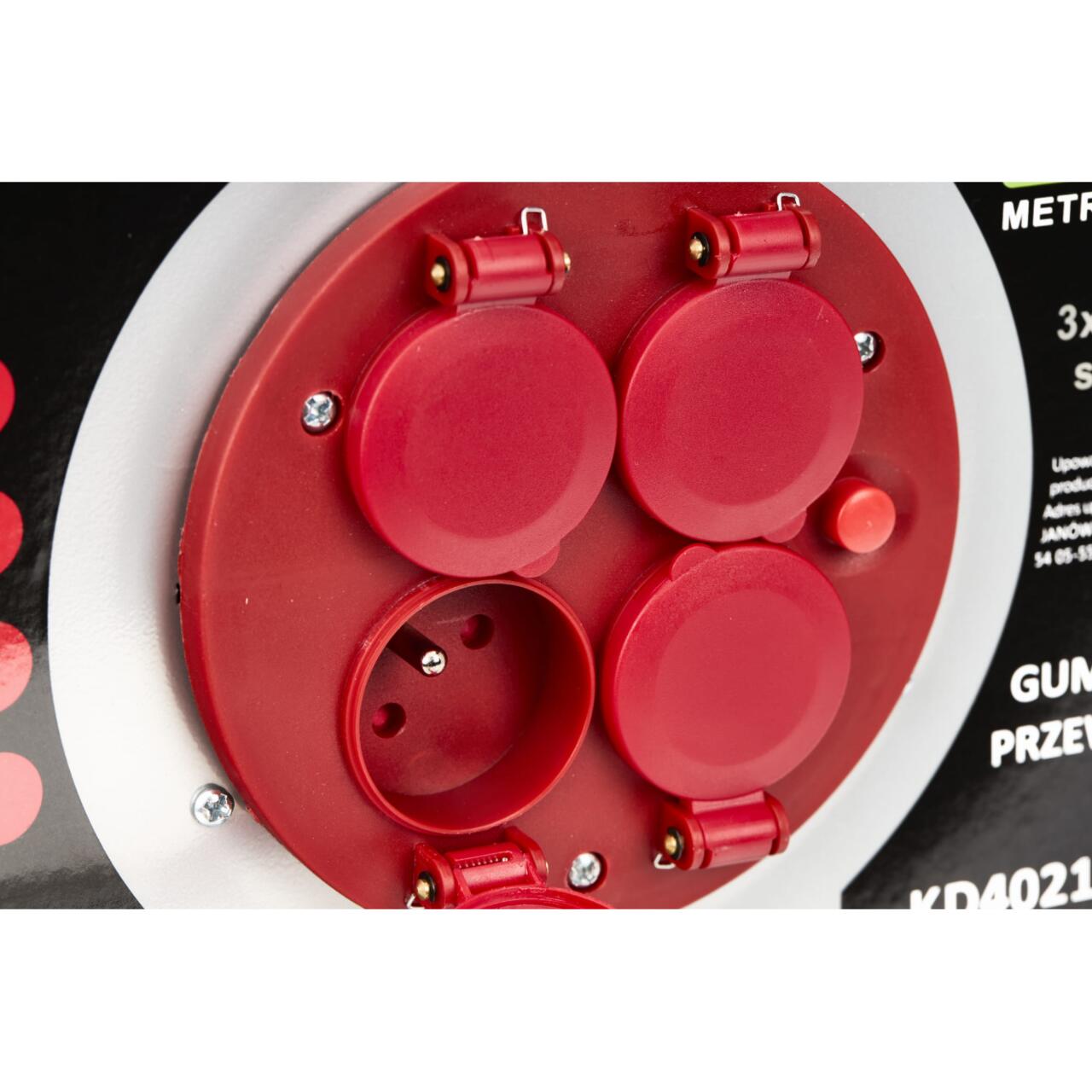 Prelungitorul de grădină KD4021 de la Kraft & Dele este o soluție practică și sigură pentru conectarea aparatelor electrice de uz casnic, cum ar fi mașinile de tuns iarba, aspiratoarele auto și uneltele de grădină. Designul robust al tamburului facilitează înfășurarea și depozitarea cablului, în timp ce prizele, protejate de un capac, oferă rezistență la condițiile meteorologice și la deteriorările mecanice.