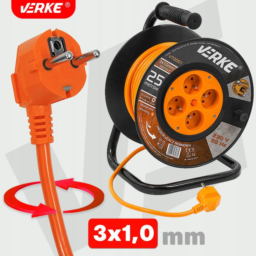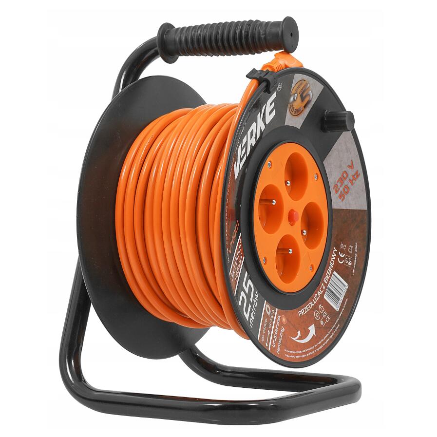 Rola prelungitor cablu cu cadru metalic, 25 metri 3 x 1 mm, Verke