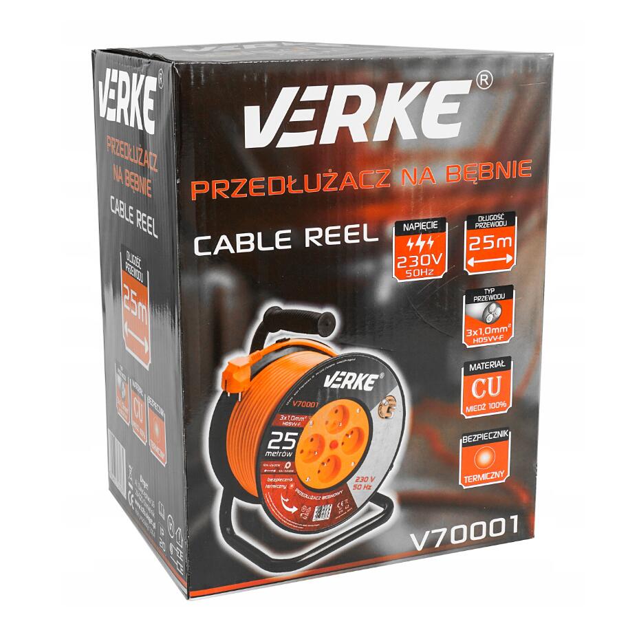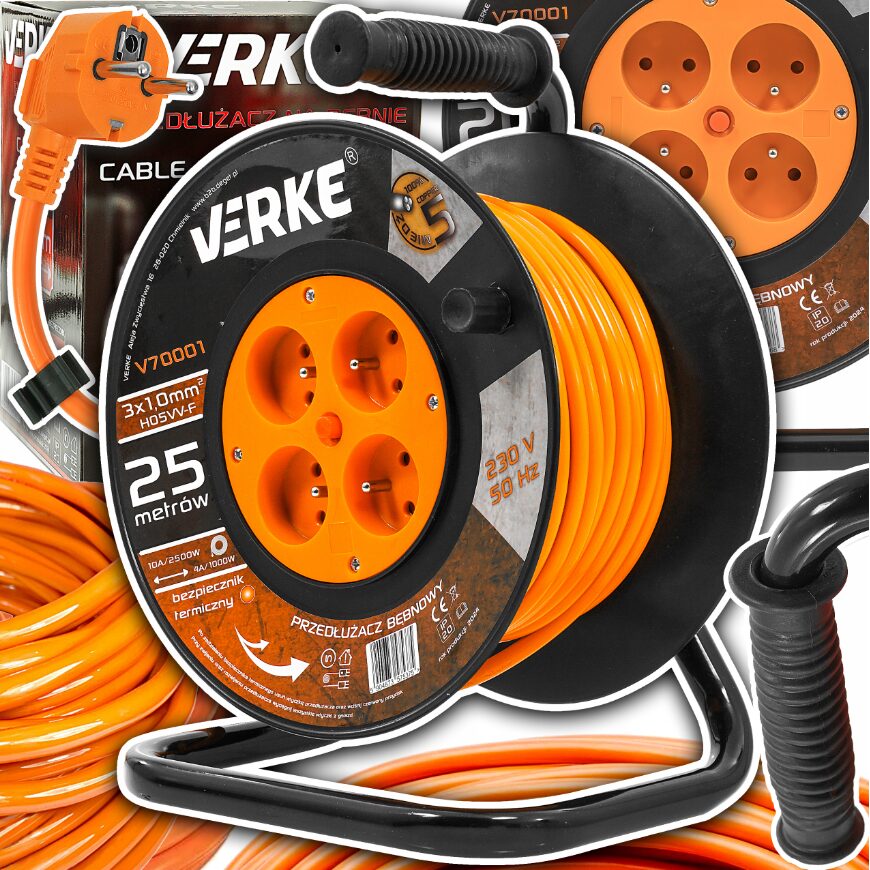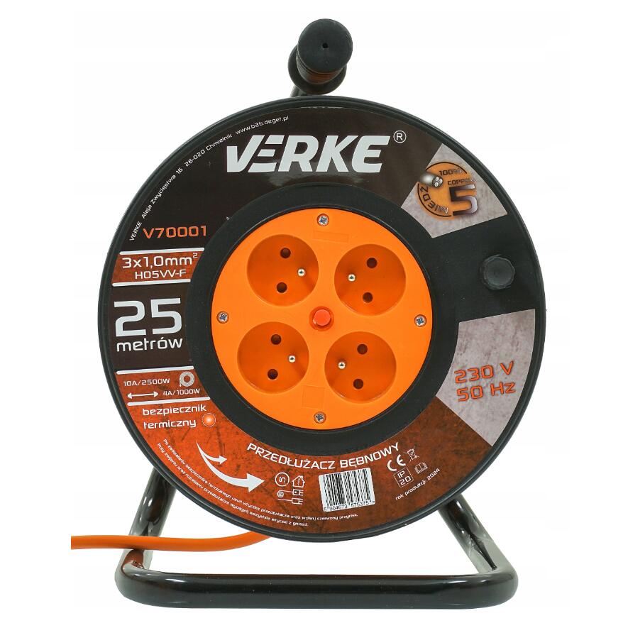 V70001 Rola prelungitor cablu cu cadru metalic 25 metri 3 x 1 mm, Verke