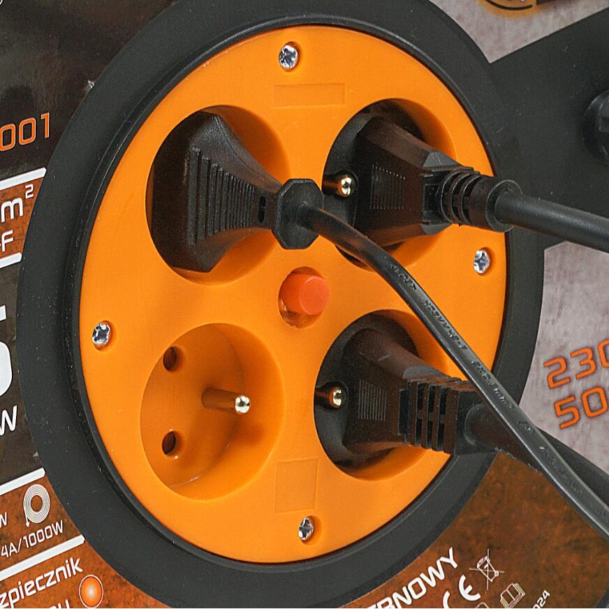 Cablu prelungitor bobina de înaltă calitate, lungime 25 m, cu 4 prize.