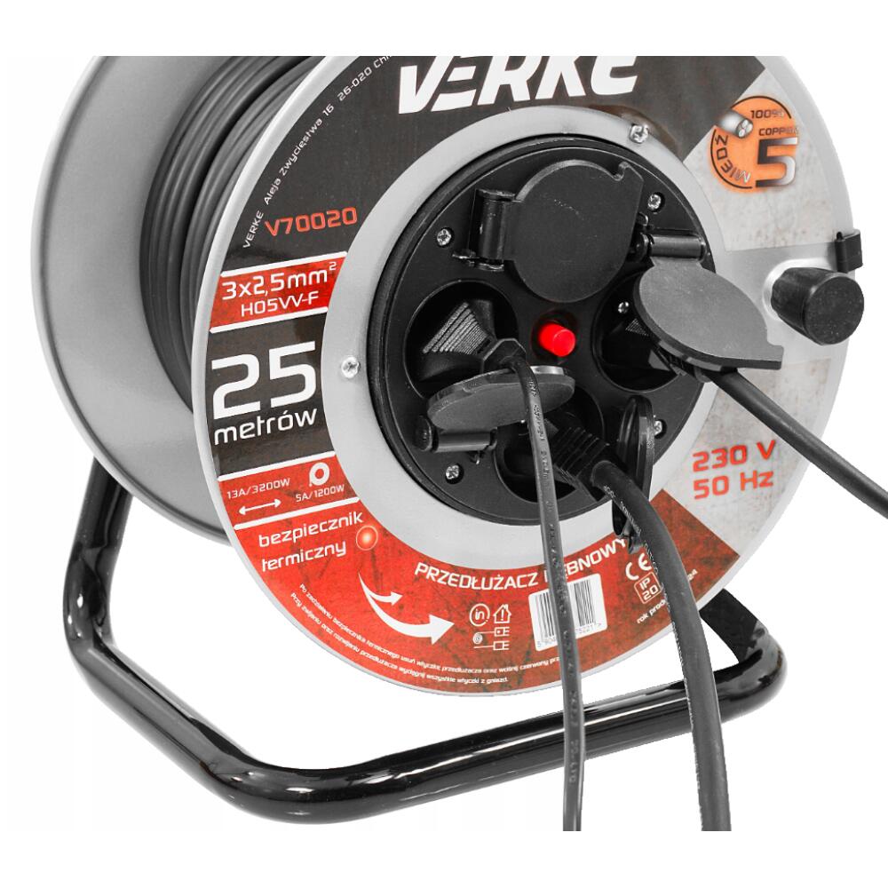 Rola prelungitor cablu cu cadru metalic 25 metri 3 x 2,5 mm Verke