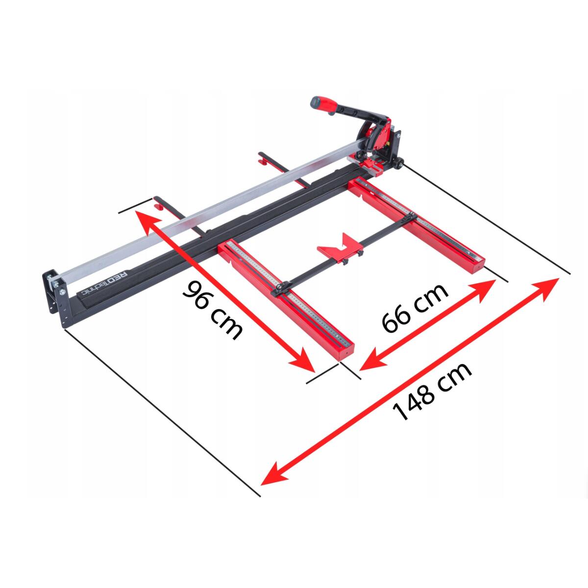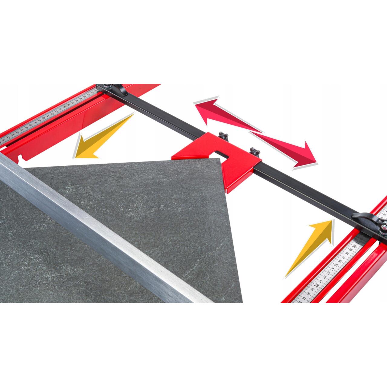 - Suporturi suplimentare si brate lungi de 60 cm: Cutitorul este echipat cu suporturi suplimentare, ceea ce mareste stabilitatea la taierea placilor mari si grele. Brațele lungi de 60 cm cu un accesoriu de tăiere cu diamant (45 de grade) măresc suplimentar funcționalitatea instrumentului, permițând o varietate de modele de tăiere.