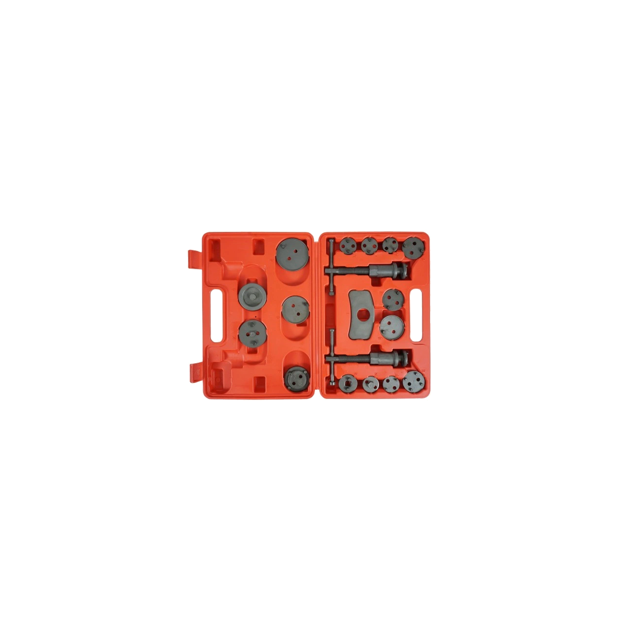 Set profesional de 18 piese pentru inversarea/împingerea pistoanelor în cilindrii sistemului de frânare, necesar la repararea vehiculelor echipate cu frâne cu disc.