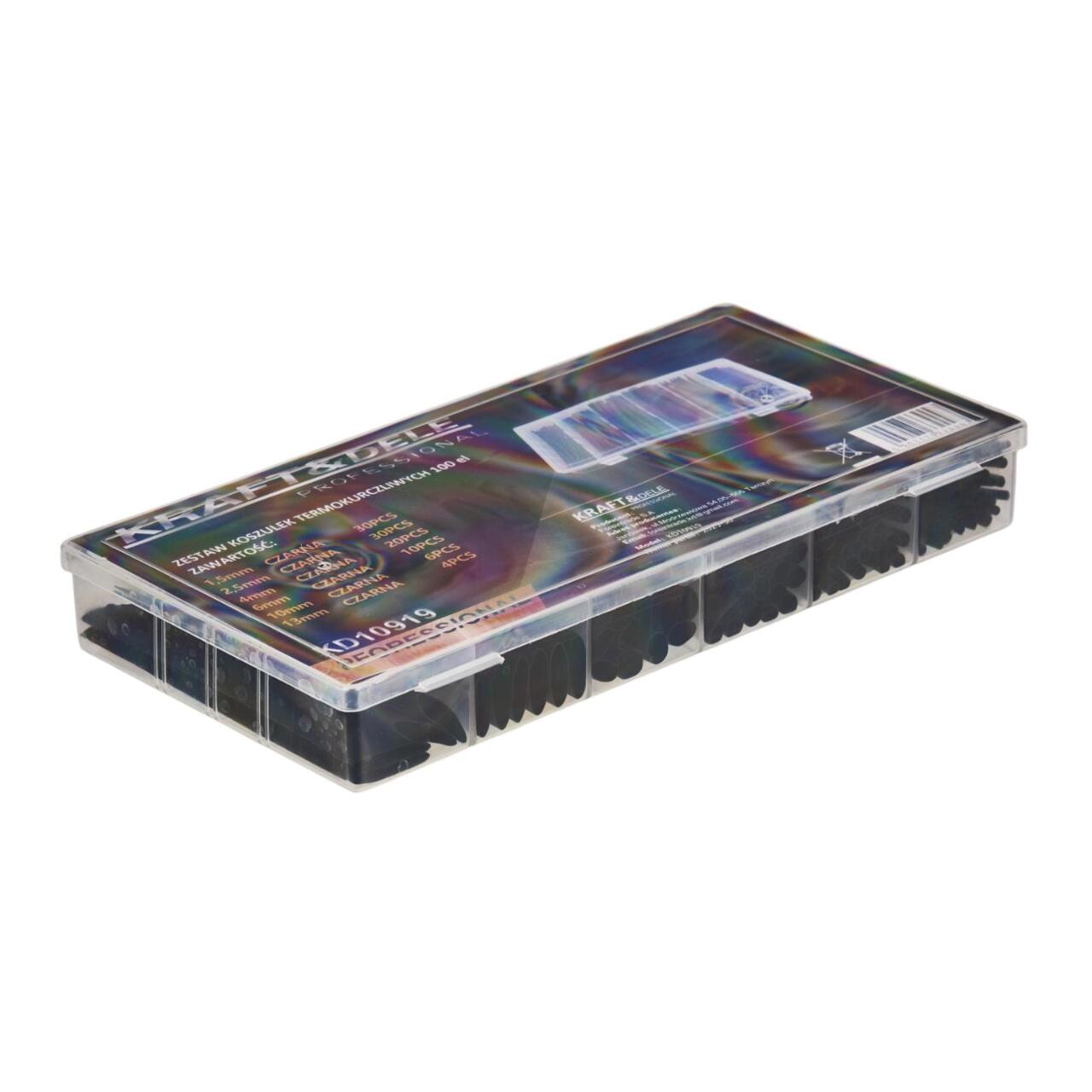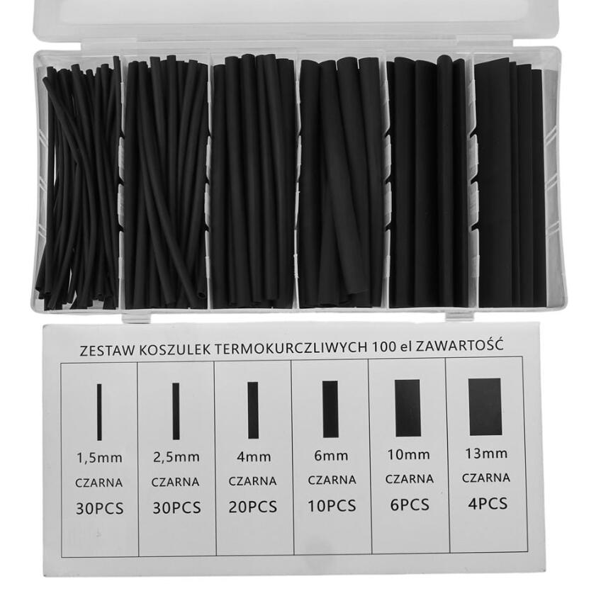 Set 100 tuburi termocontractabile 6 dimensiuni, negre, Kraft