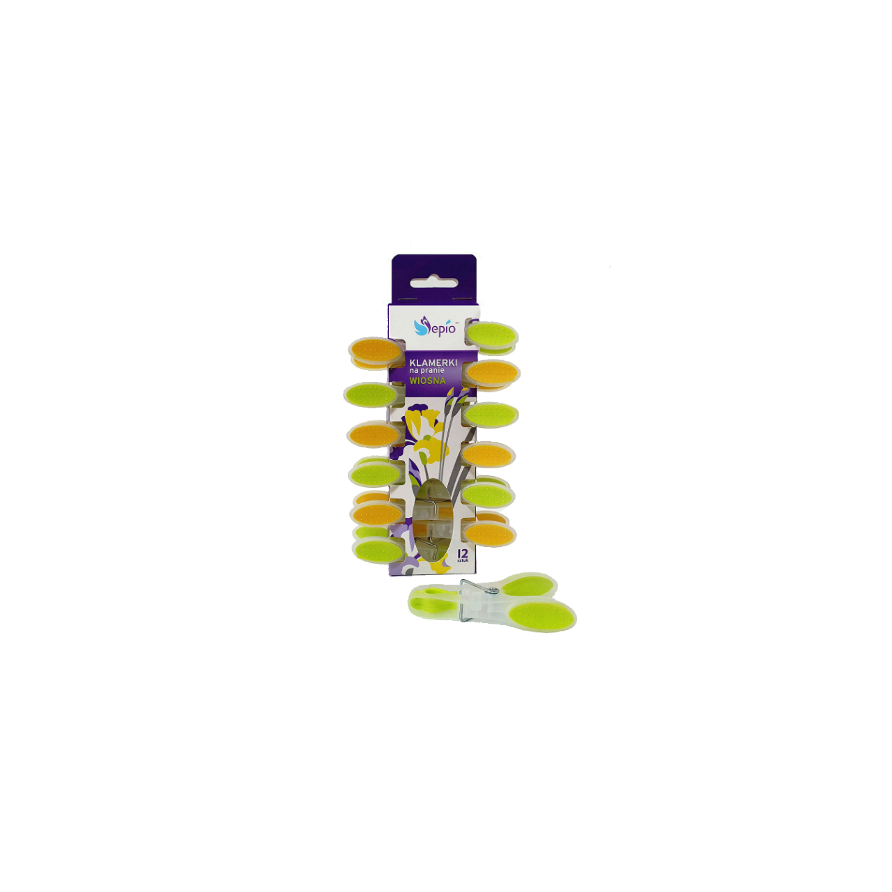 Set 12 carlige pentru rufe, alb cu verde Sepio