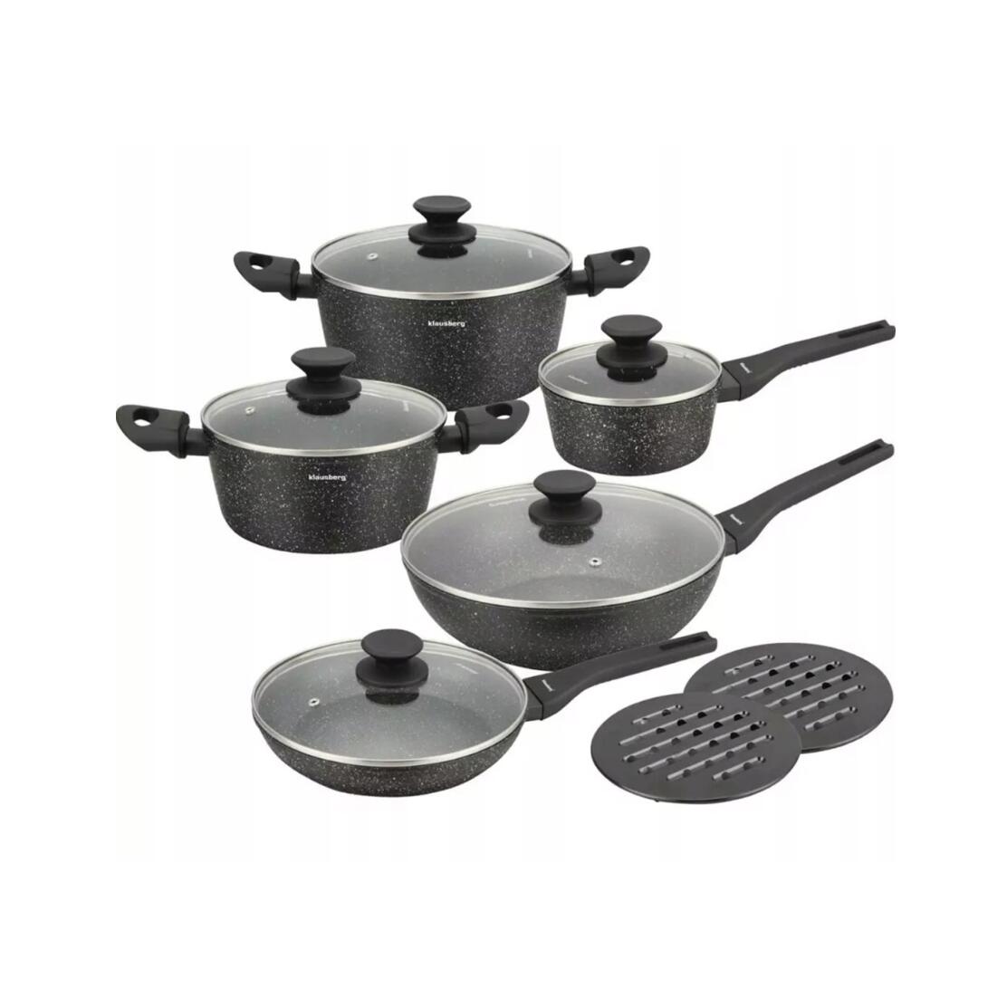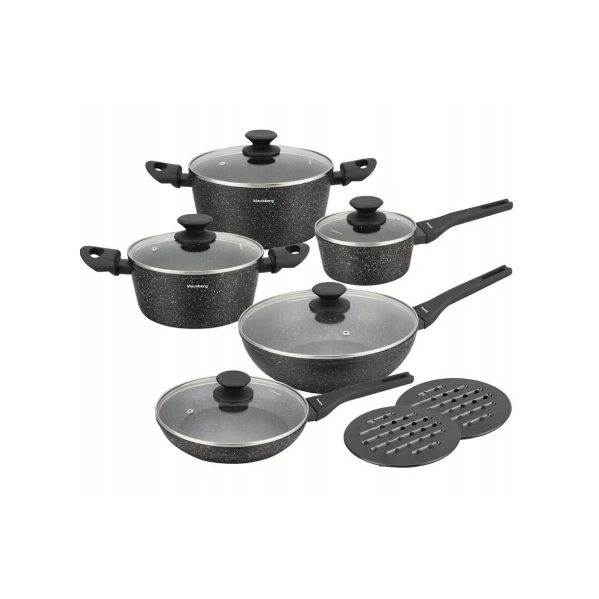 • Acoperire antiaderență marmorată: Se asigură că alimentele nu se lipesc de fund și permite o curățare ușoară.