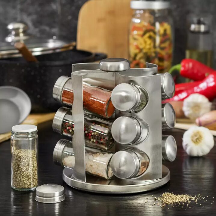Suportul rotativ din oțel inoxidabil asigură ordine în bucătăria dvs. și că veți găsi condimentul potrivit în cel mai scurt timp atunci când aveți nevoie de el.