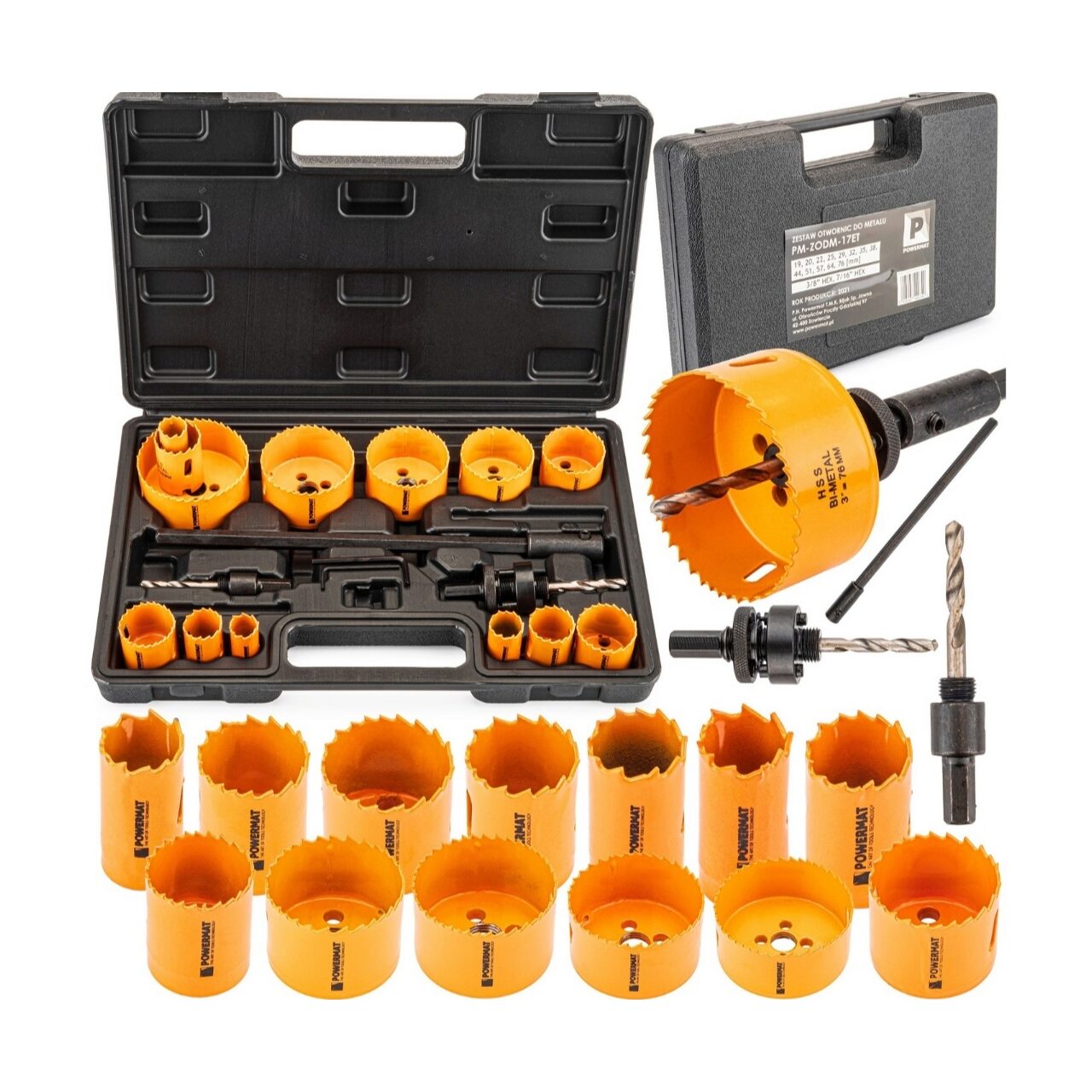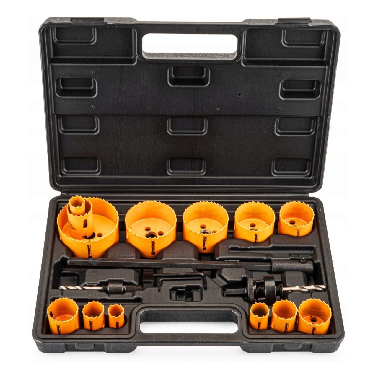 13 fierăstraie cu găuri: 19, 20, 22, 25, 29, 32, 35, 38, 44, 51, 57, 64, 76 mm