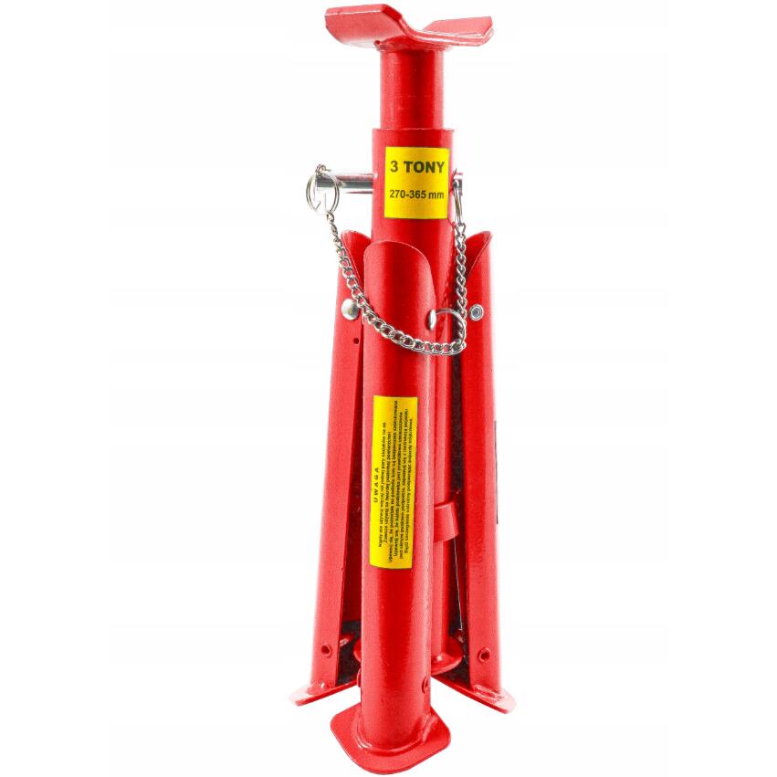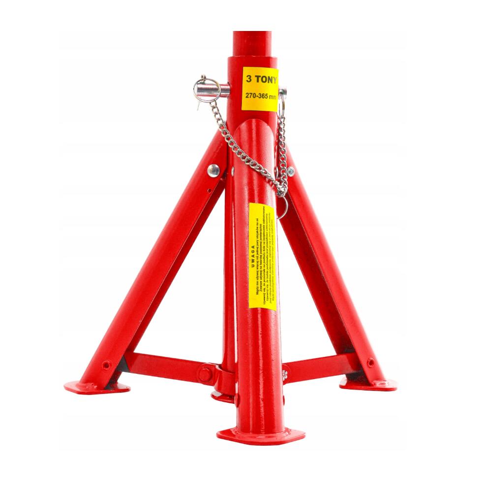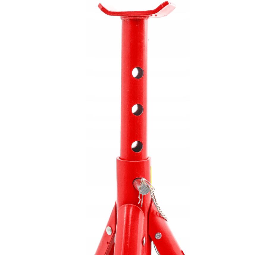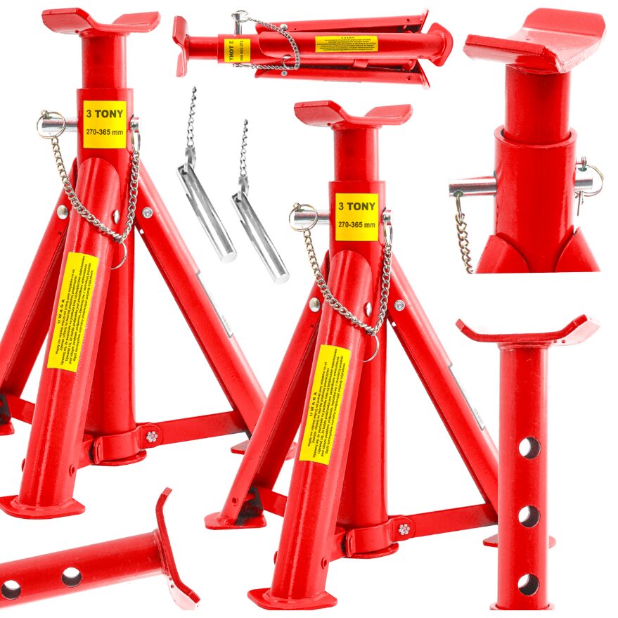 Suporturile pentru mașină au trei picioare pliabile și reglare pe înălțime în trei trepte. Știftul de siguranță conectat permanent la bază. Perfect pentru a ușura sarcina pe cric. Ele fac parte din echipamentul de bază al fiecărui atelier.