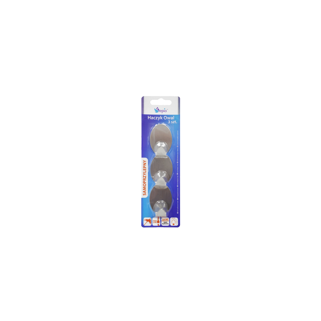 Set 3 agatatori cuier autoadezive, ovale, inox Sepio