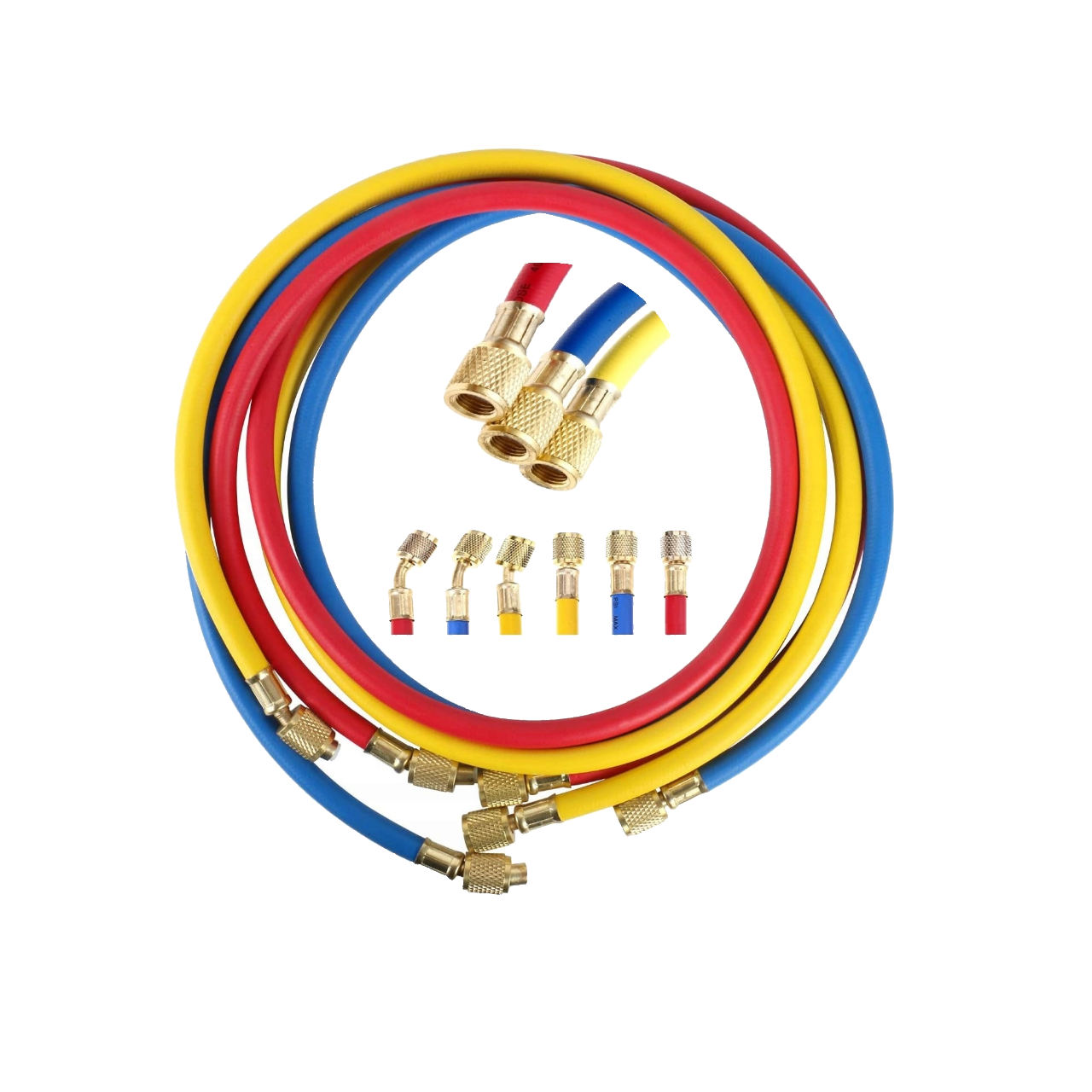 Furtunurile au racorduri standard utilizate cu manometre de agent frigorific sau statii de aer conditionat.