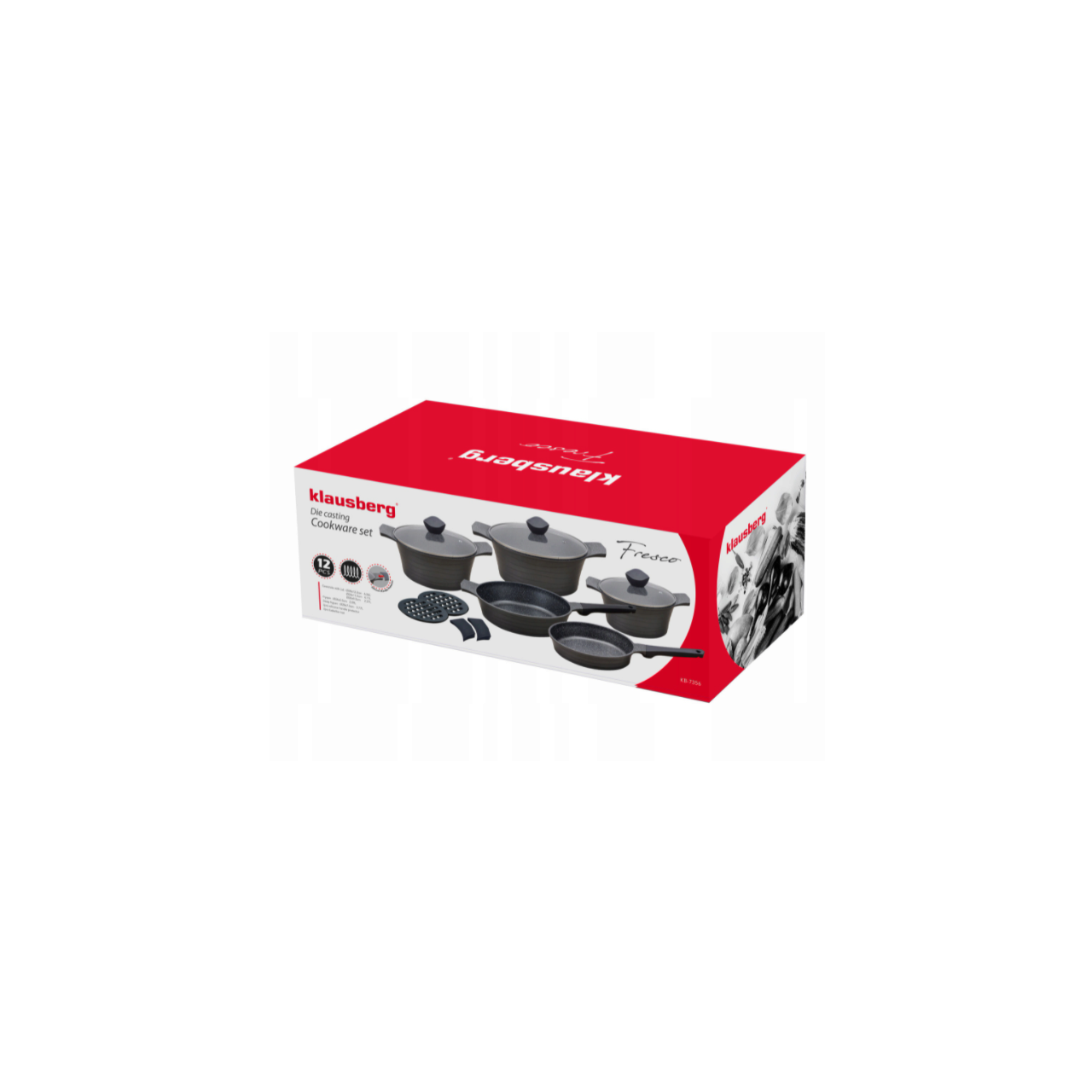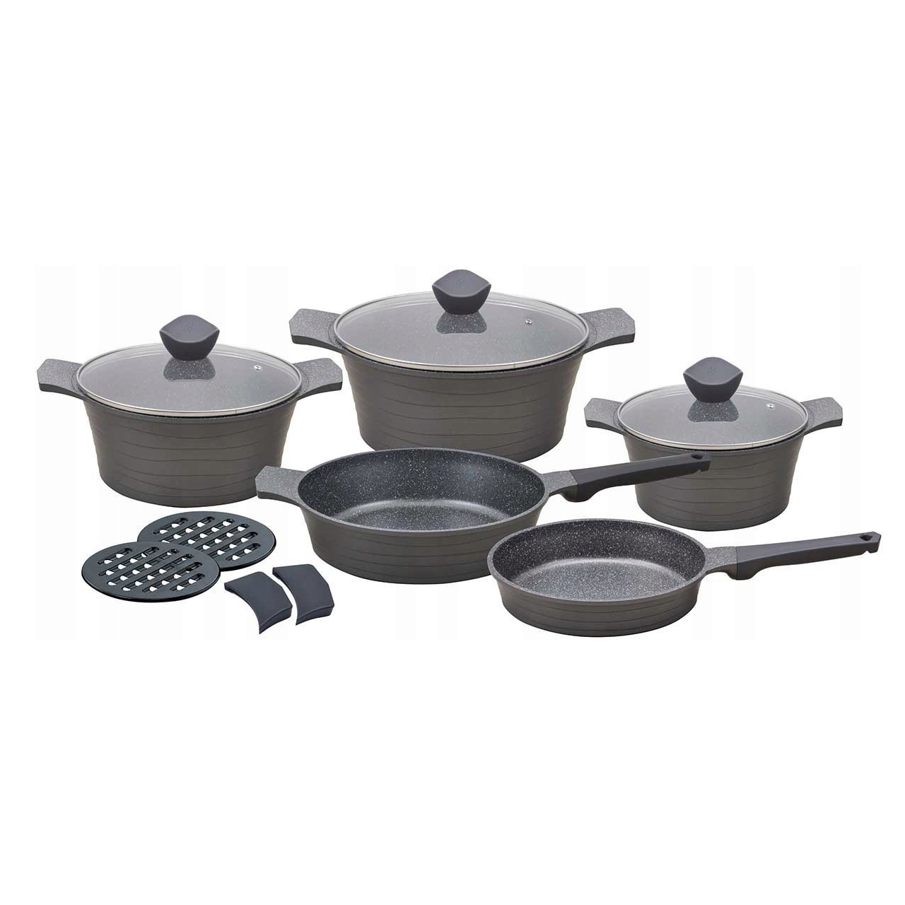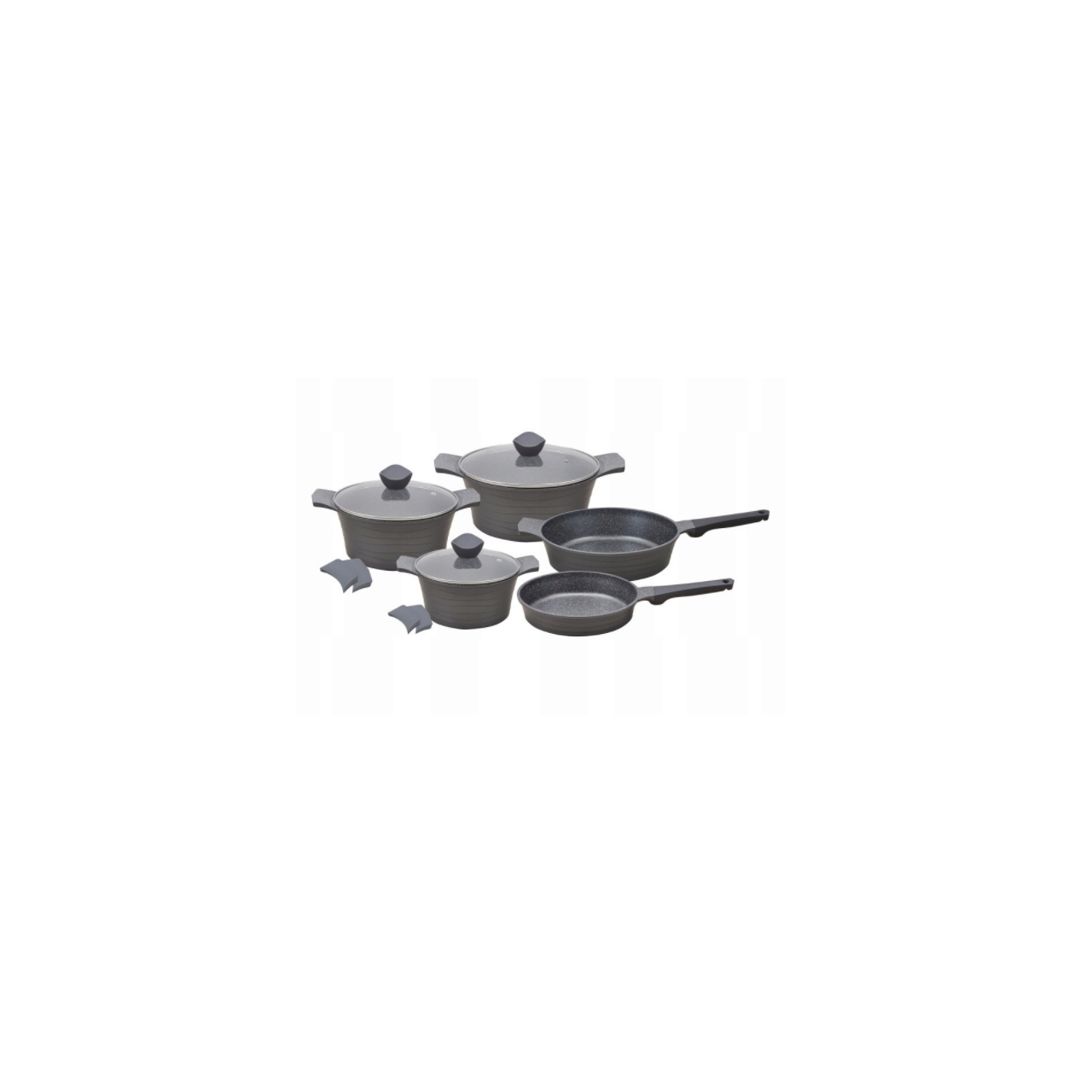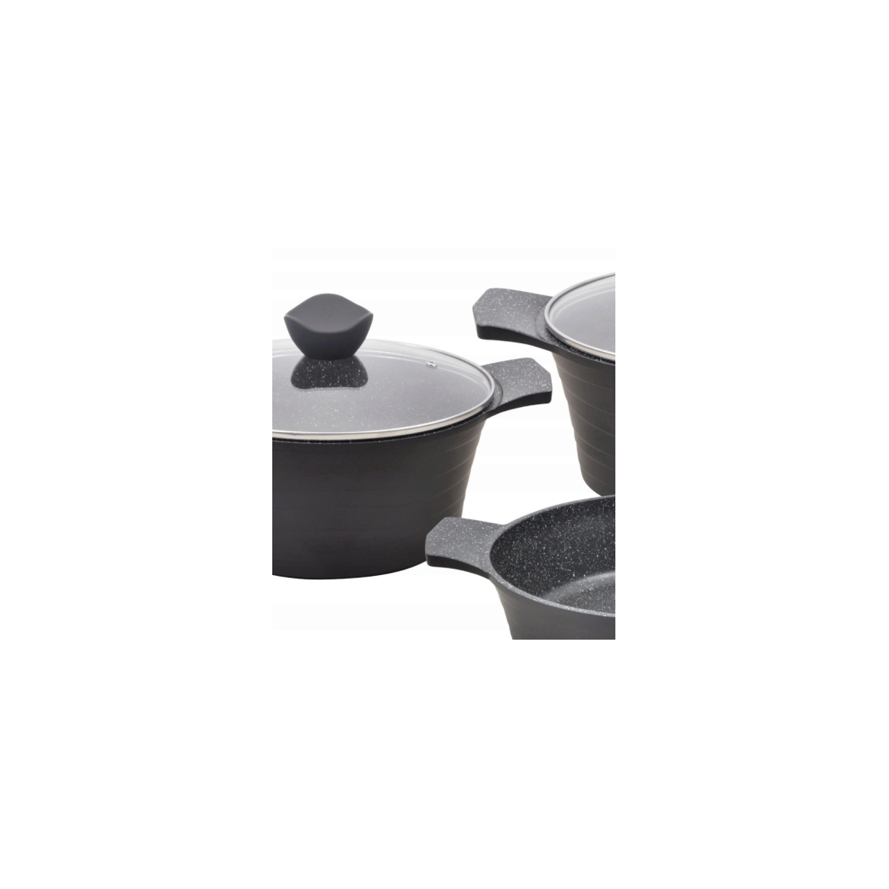 Un set de oale cu un strat de marmură antiaderent. Au capace confortabile și practice din sticlă, cu orificiu de evacuare a aburului. Proiectate pentru a fi folosite în orice bucătărie, inclusiv în inducție.