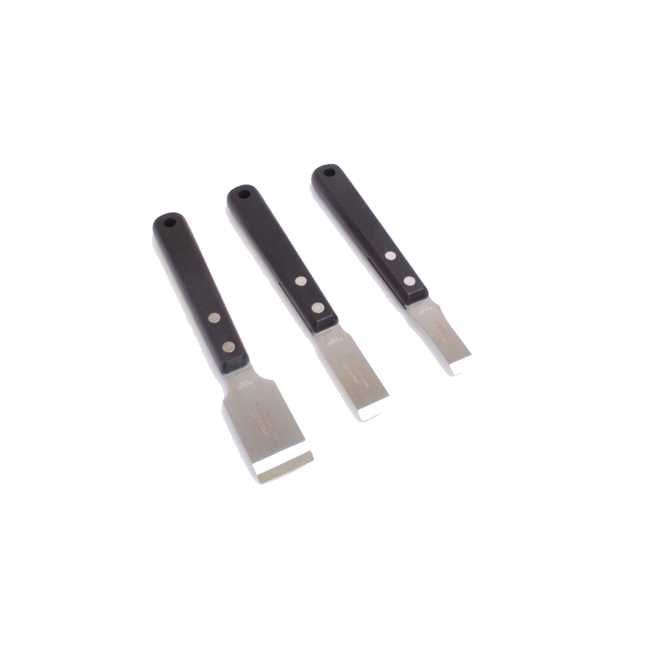 Setul include trei raclete cu lățimi diferite ale lamei. Racletele pot fi folosite la manipularea tablei.