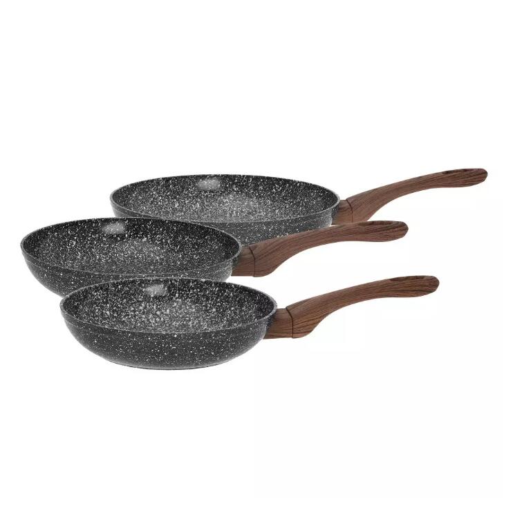 Setul perfect pentru fiecare familie și consumatori care apreciază posibilitatea unui control complet asupra compoziției dietei lor. Încălzire uniformă și absorbție rapidă a căldurii pentru a scurta timpul de prăjire și a vă garanta nivelul optim de eficiență energetică. O acoperire cu trei straturi, extrem de dura, care, datorită folosirii particulelor de granit, obține o suprafață rugoasă și mai rezistentă la zgârieturi, abraziune și temperaturi ridicate. Corp de tigaie extrem de rezistent, care nu se deformează, astfel încât să câștigi încredere când gătești și, în același timp, vasele vor rezista ani de zile. Mânerul realizat în tehnologia soft touch nu alunecă din mâini și permite, de exemplu, transportul comod al vaselor și așezarea pe masă în timpul unei mese comune. Modelele disponibile in set au un diametru de: 20 cm, 24 cm, 28 cm.