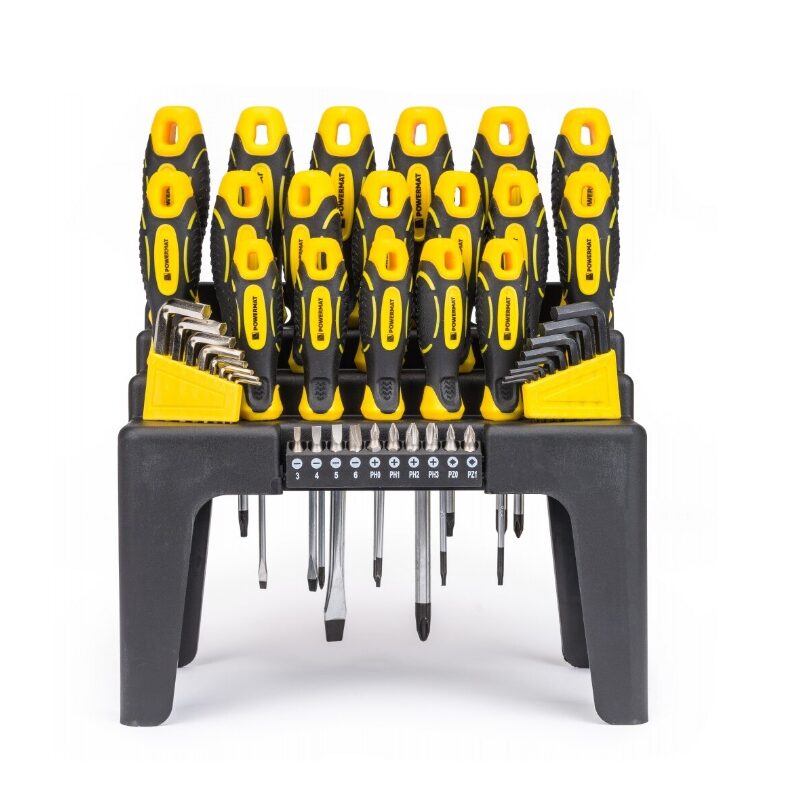 Standul inclus face ușor depozitarea șurubelnițelor.