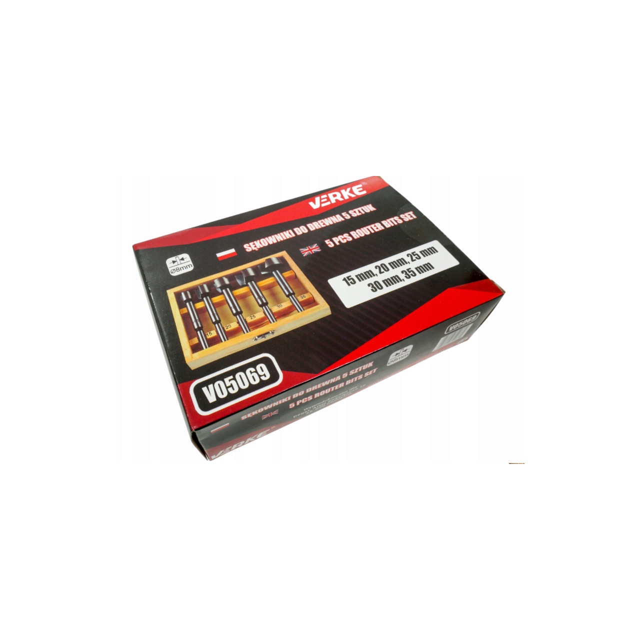 Un set de tăietoare de lemn pentru tăierea găurilor, îndepărtarea nodurilor și a știfturilor. Burghiile au fost fabricate din otel pentru scule. Acestea asigură o muncă eficientă, de neînlocuit în fabricile de tâmplărie și mobilă. Setul este ambalat într-o cutie din lemn tare și estetică.