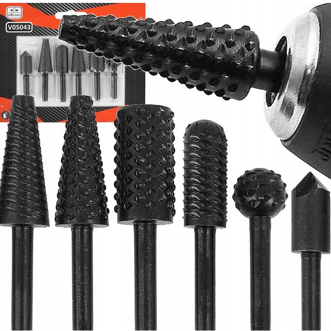 Un set de 6 freze concepute pentru prelucrarea oțelului, aluminiului și lemnului.