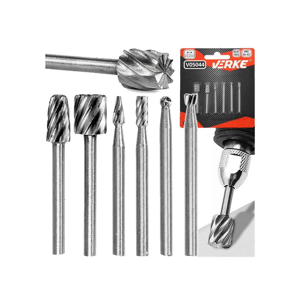 Set 6 freze pentru aluminiu si otel 3.2 mm, HSS, Verke