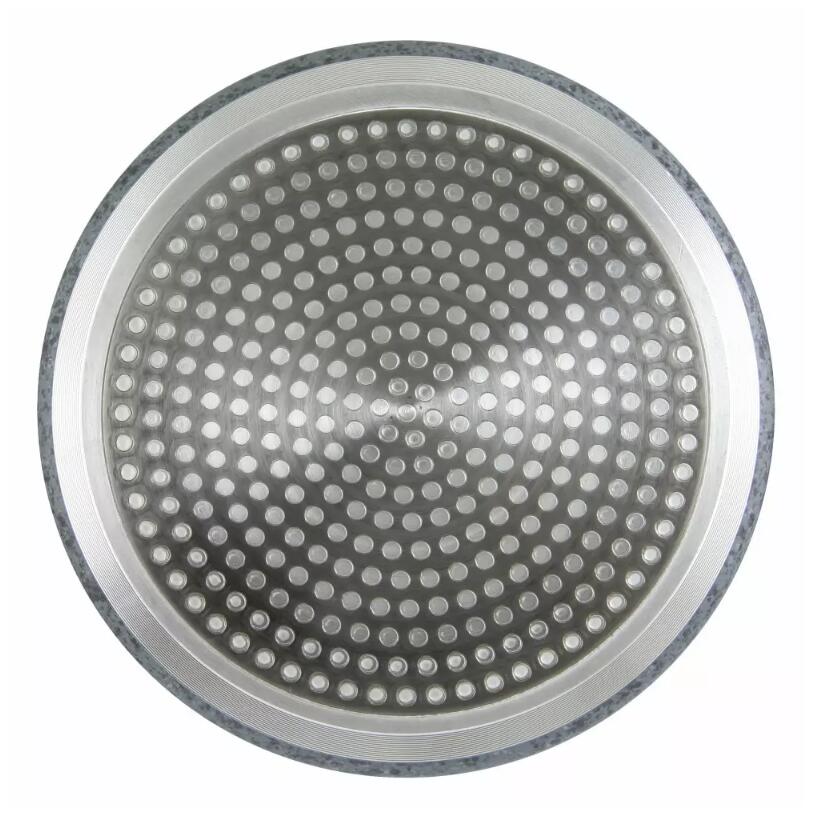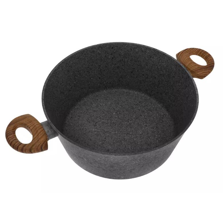 Acoperirea antiaderență de granit este îmbogățită cu granite fine, datorită cărora obține o duritate mai mare. Este mai dur decât teflonul, dar în același timp își păstrează avantajele: nu arde, distribuie bine căldura. Combină avantajele vaselor din fontă și teflon. Are toate avantajele teflonului, dar este mai rezistent la deteriorare, depășind chiar și acoperirile ceramice. Acest tip de oale și tigăi vă permite și să prăjiți cu o cantitate minimă de grăsime, deoarece vasele de gătit se încălzesc ca o piatră și degajă căldură pe toată suprafața sa.