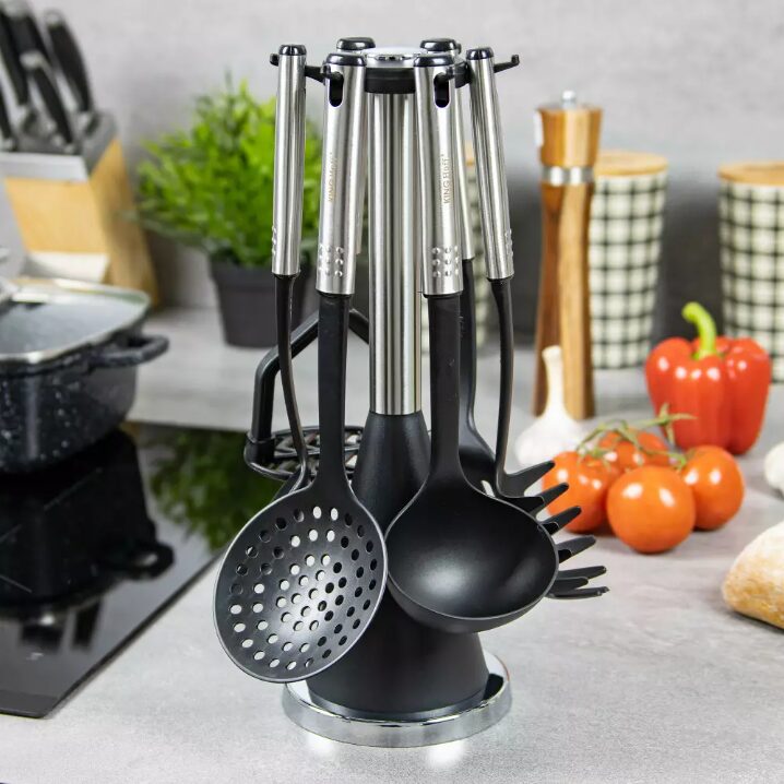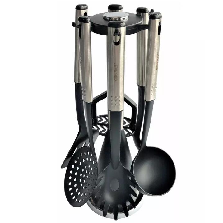 Set 6 ustensile de bucatarie, cu suport, inox-nailon, Kinghoff
