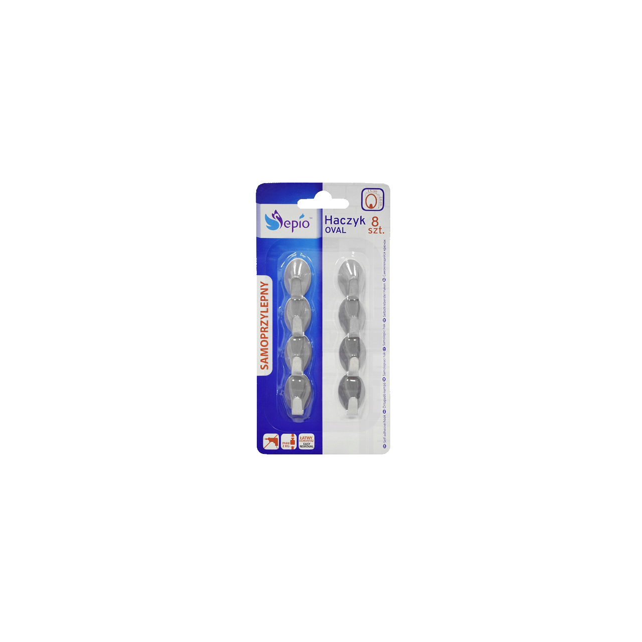 Set 8 agatatori cuier autoadezive, inox, ovale Sepio