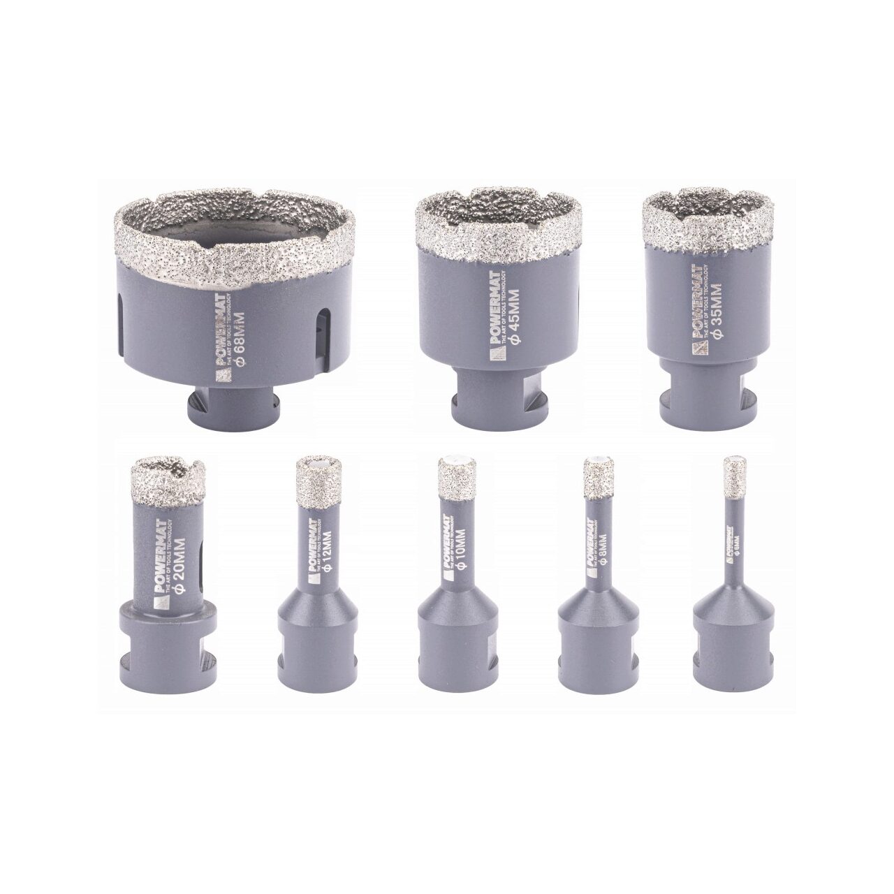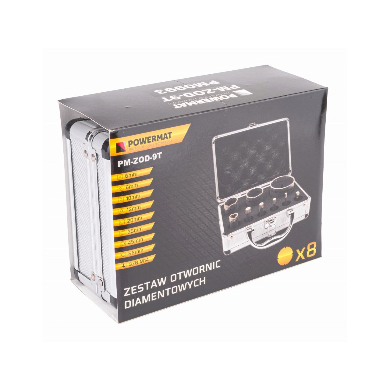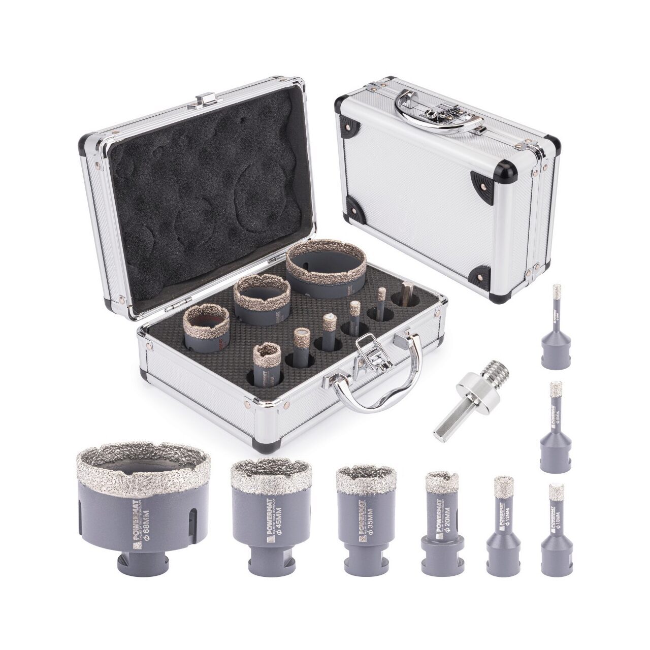 Găuri: 68/45/35/20/12/10/8/6 [mm]; Adaptor: M14 / HEX; Valiză din aluminiu.