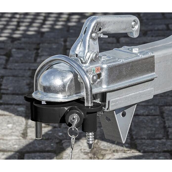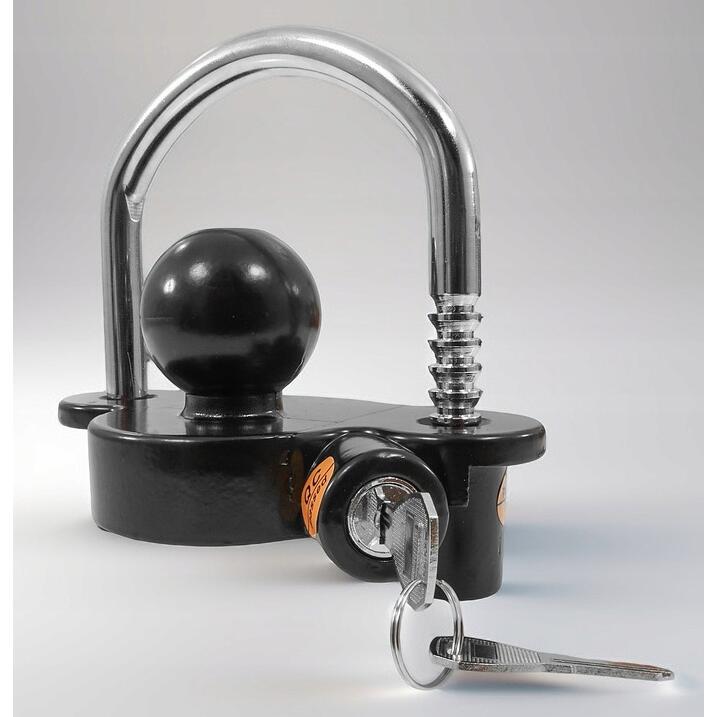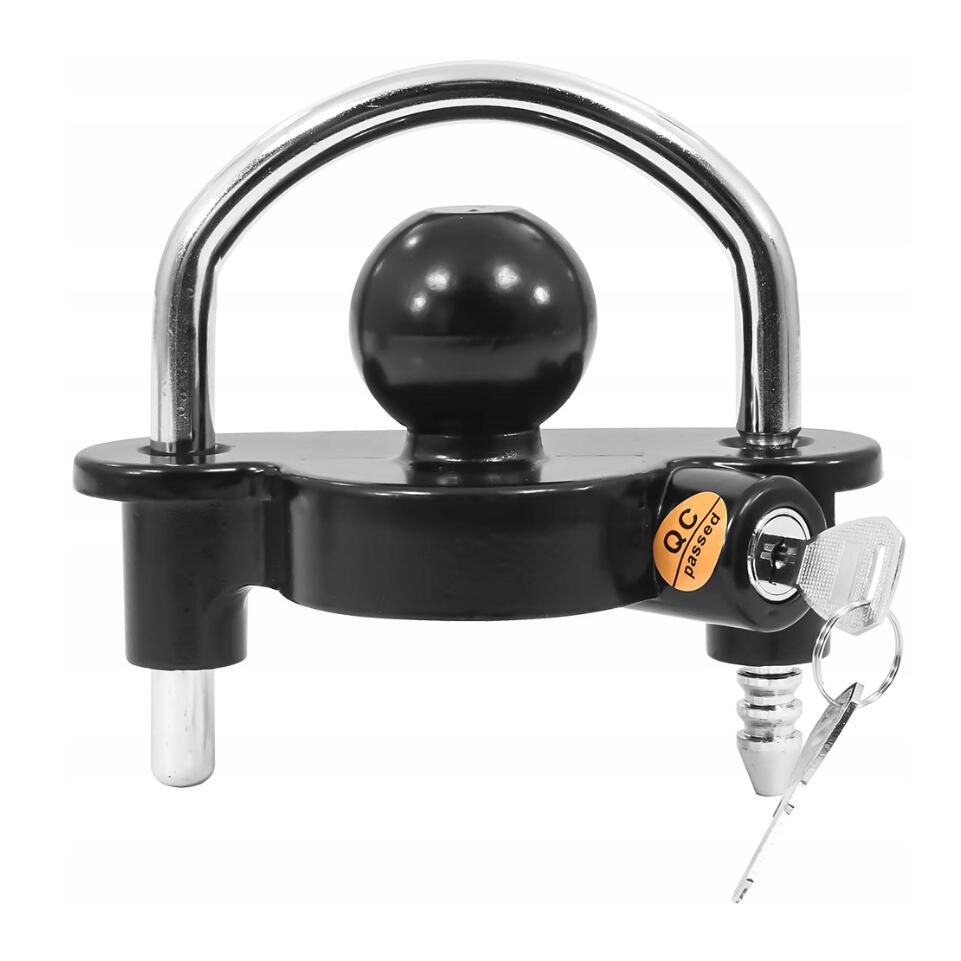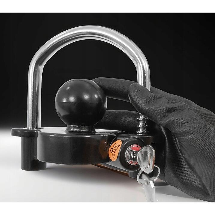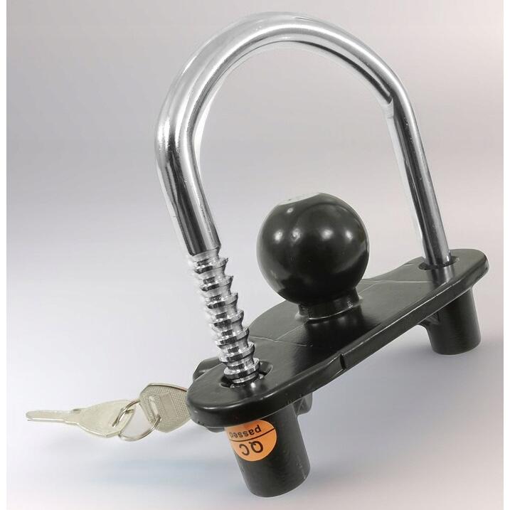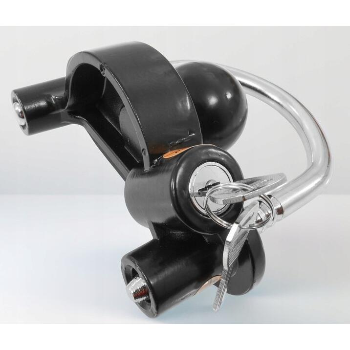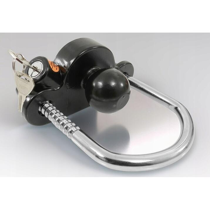 Protectie antifurt, incuietoare de tip U cu dispozitiv detasat. Blocare/securitate universală pentru remorci, remorci de bărci și remorci de camping. Este atașat la cârligul cu bilă al remorcii. Două chei incluse.