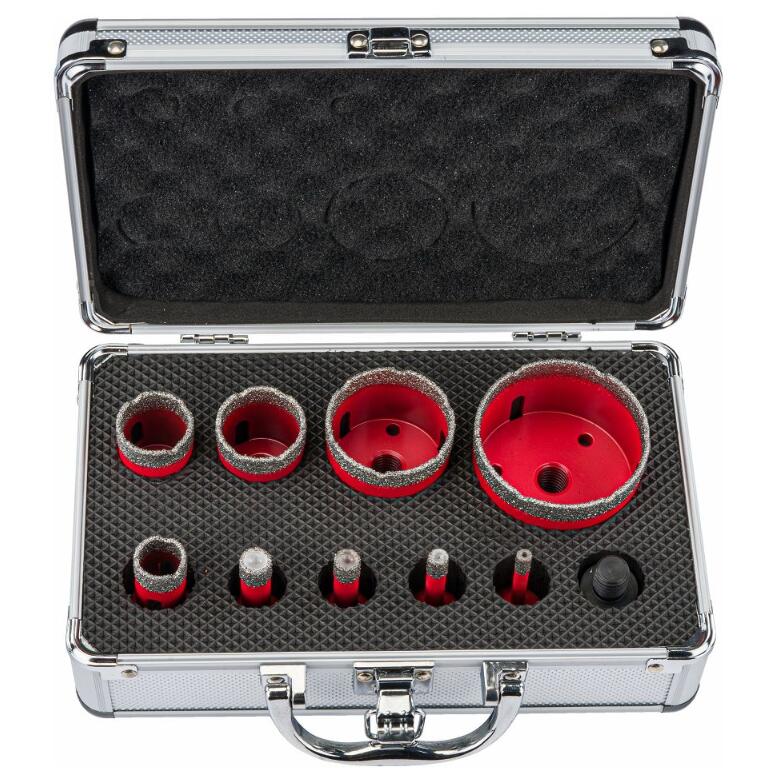 Un set de carote mici (12mm / 10mm / 8mm / 6mm) este destinat atasarii componentelor mici pe peretii acoperiti cu placi.