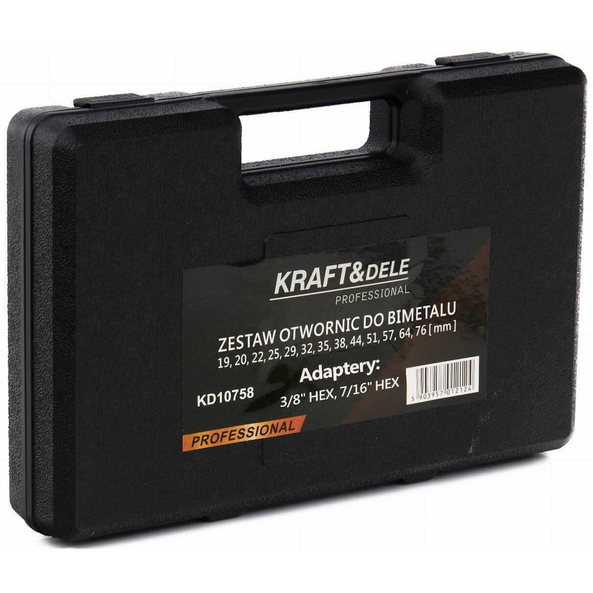 Este un set profesional de carote bimetale de la KRAFT&DELE, concepute pentru găurire precisă și eficientă într-o gamă largă de materiale.