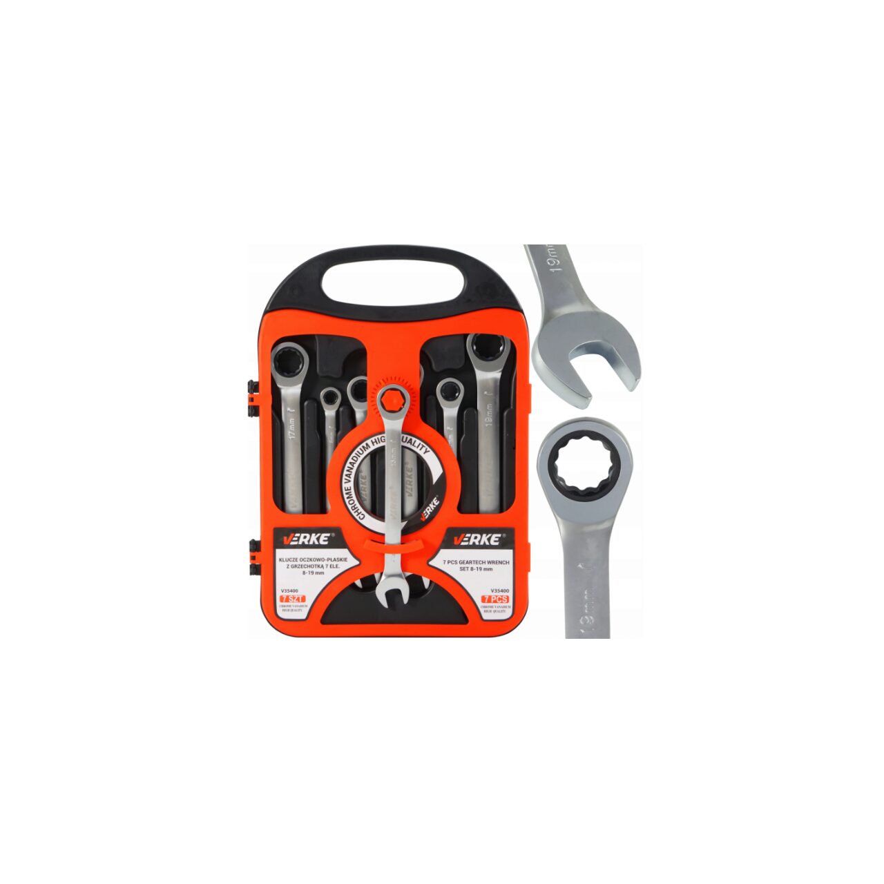 Setul include 7 chei de dimensiuni: 8mm, 10mm, 12mm, 13mm, 14mm, 17mm, 19mm