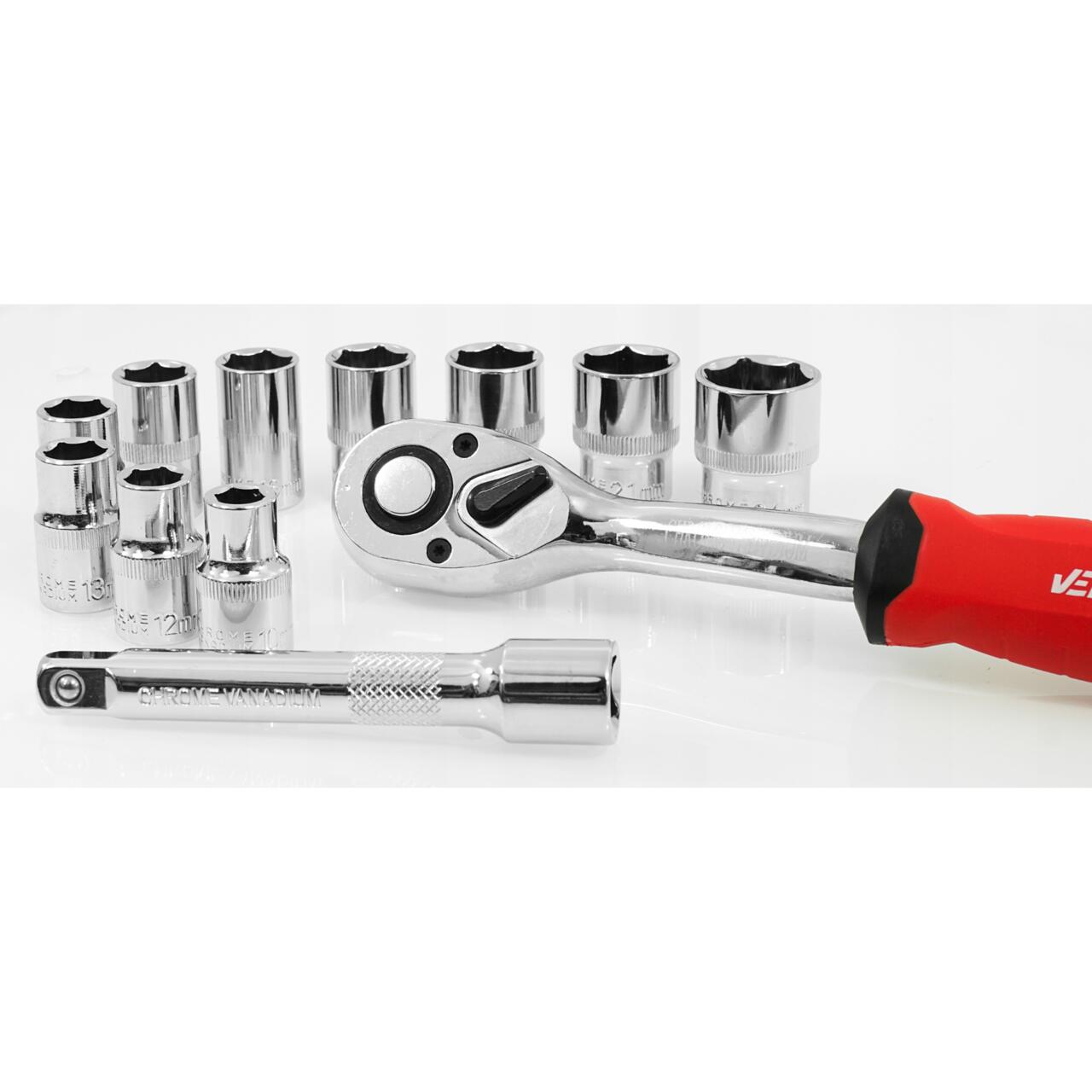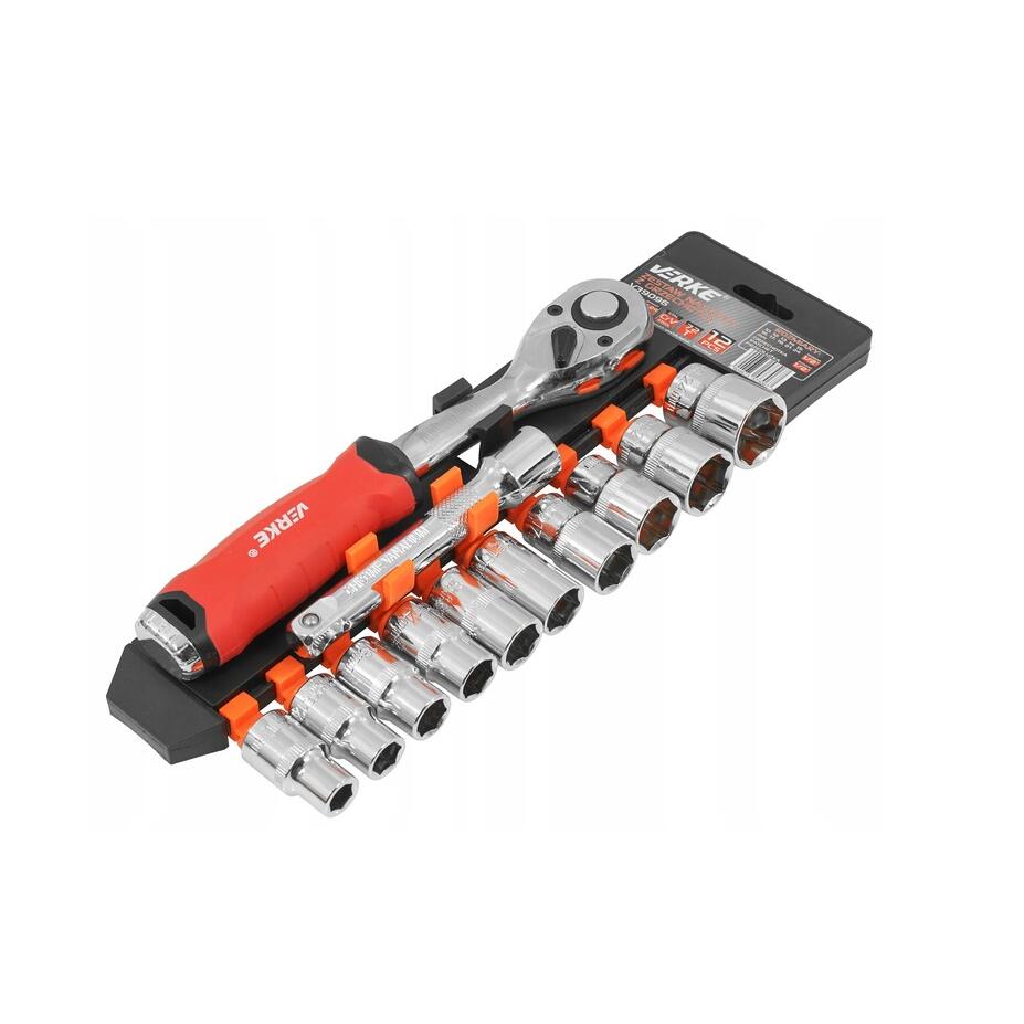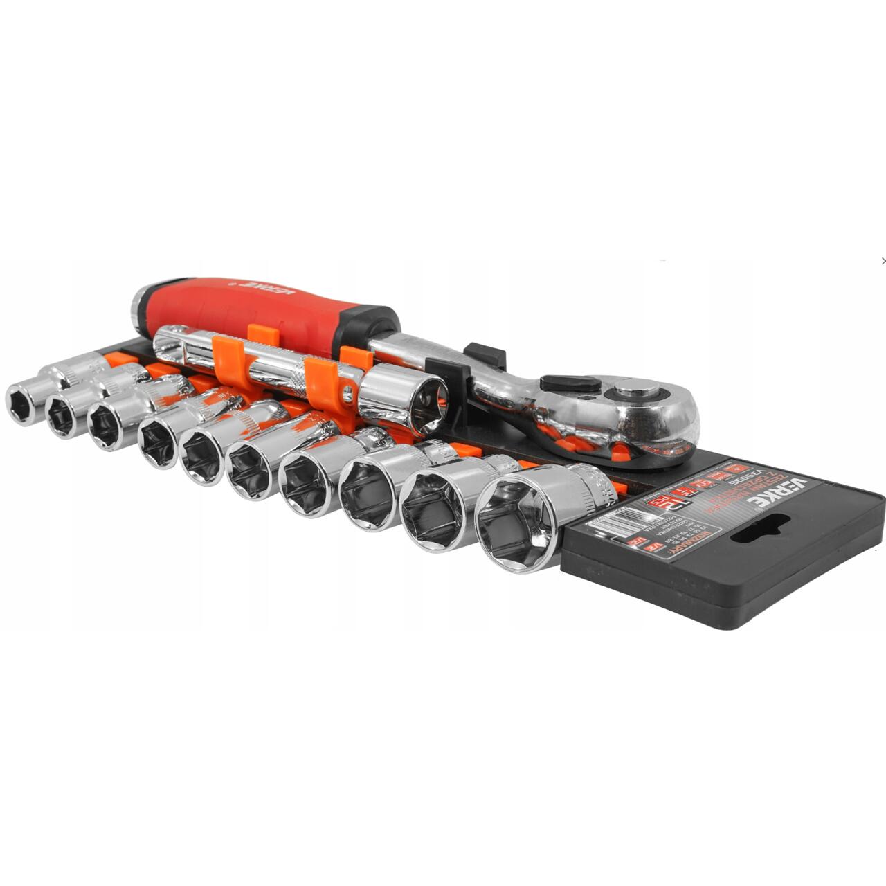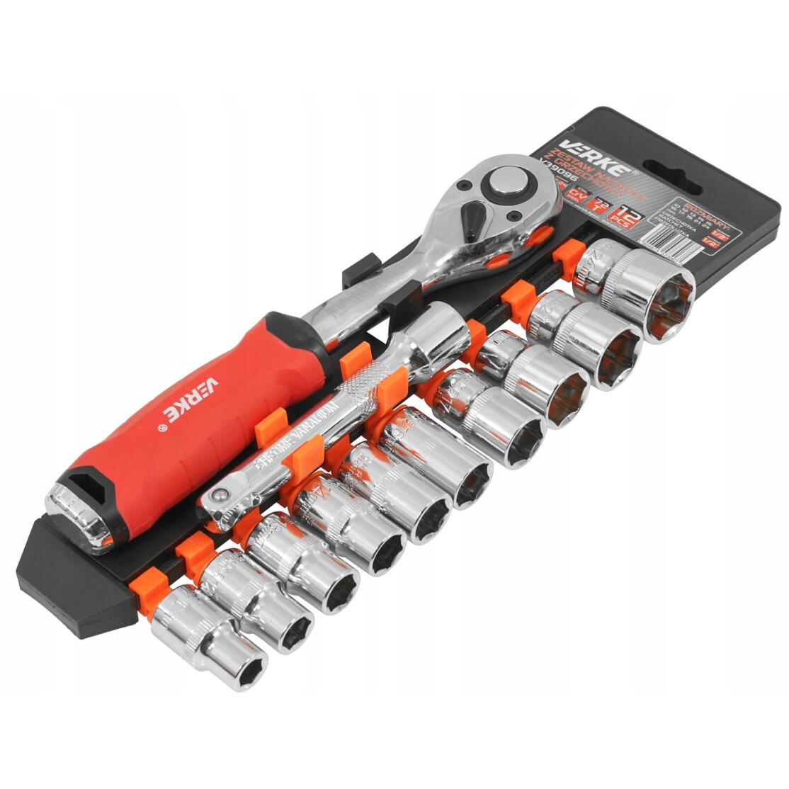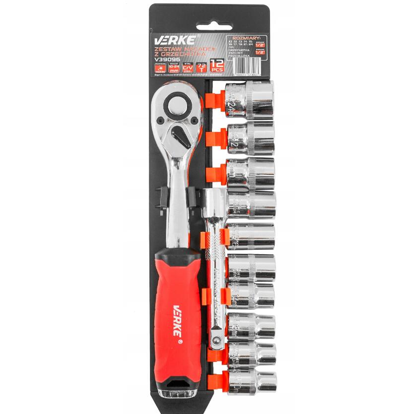 Set de scule de înaltă calitate. Cheile tubulare și dispozitivul de antrenare sunt realizate din oțel durabil CR-V crom-vanadiu pentru scule. Clichetul are 72 de dinti (cursa de lucru 5 grade).