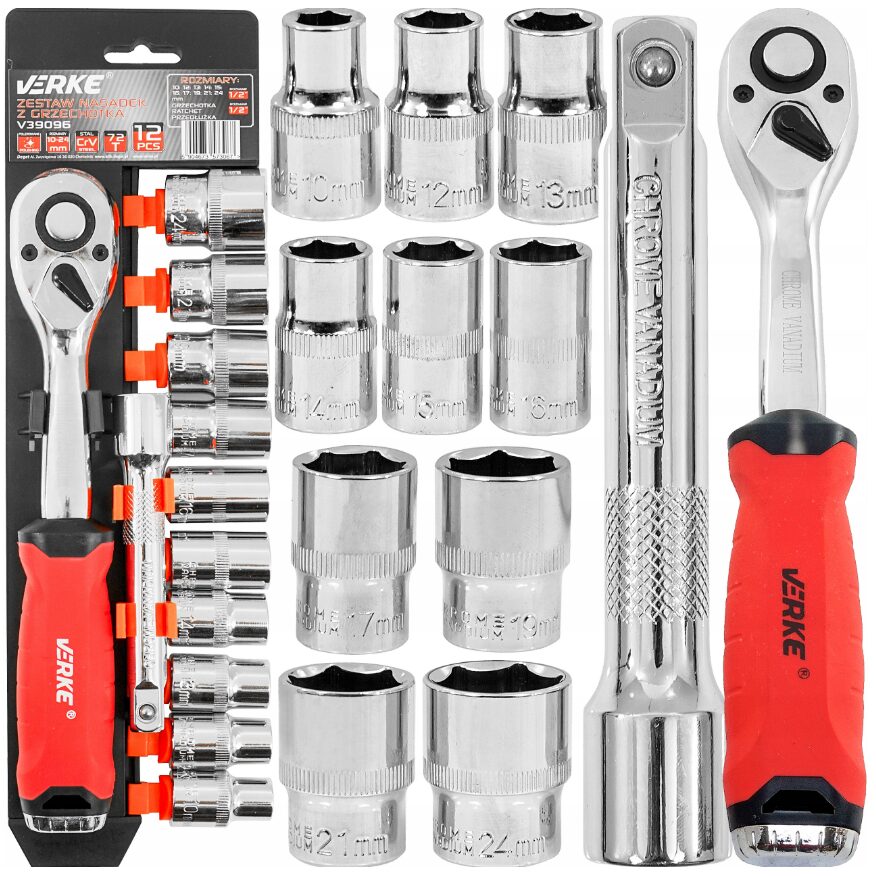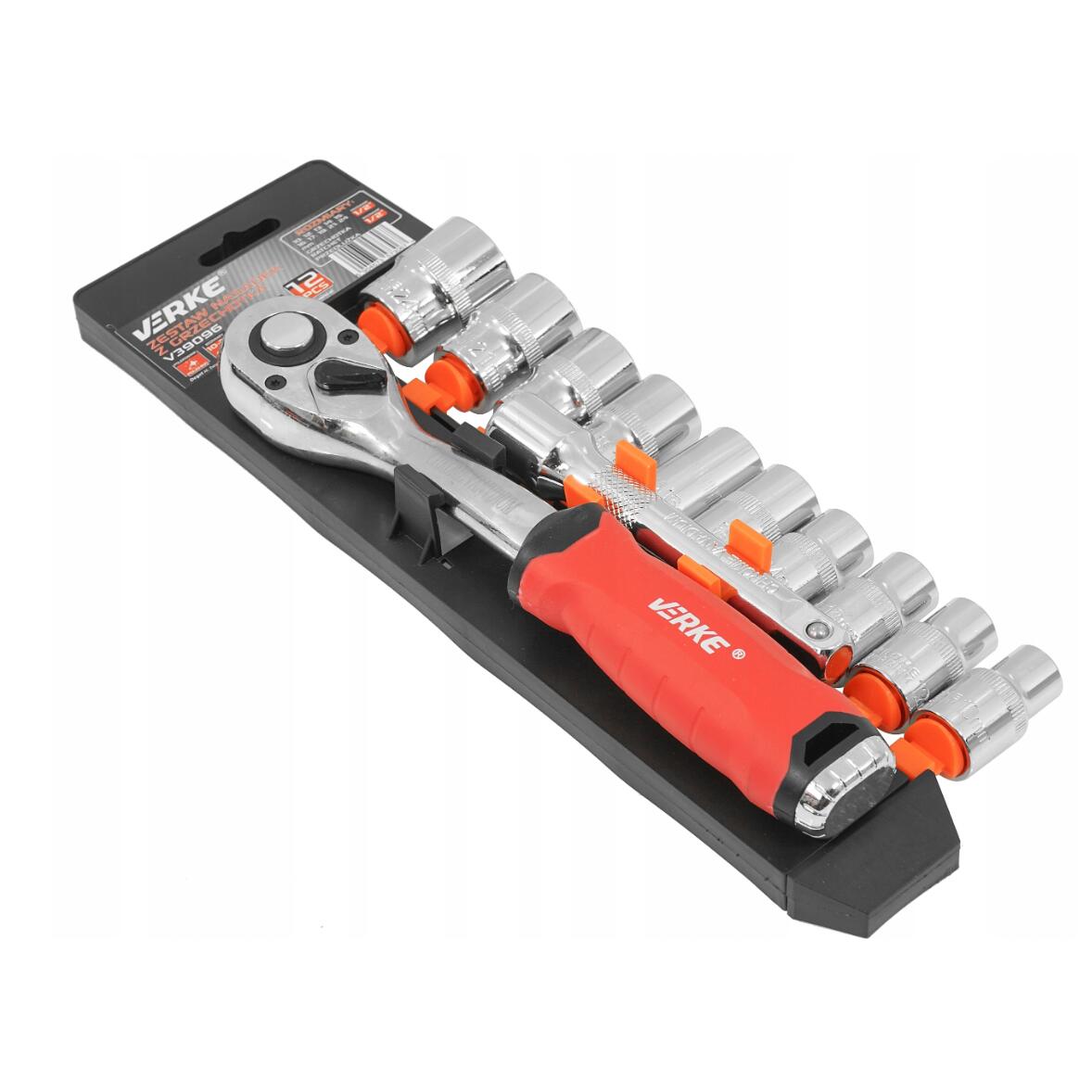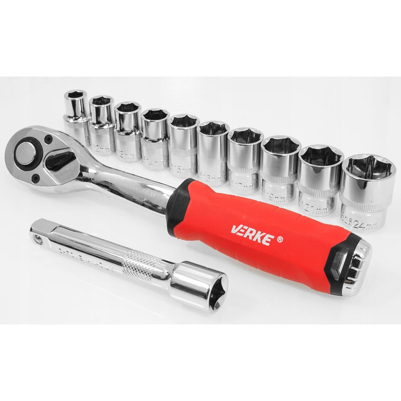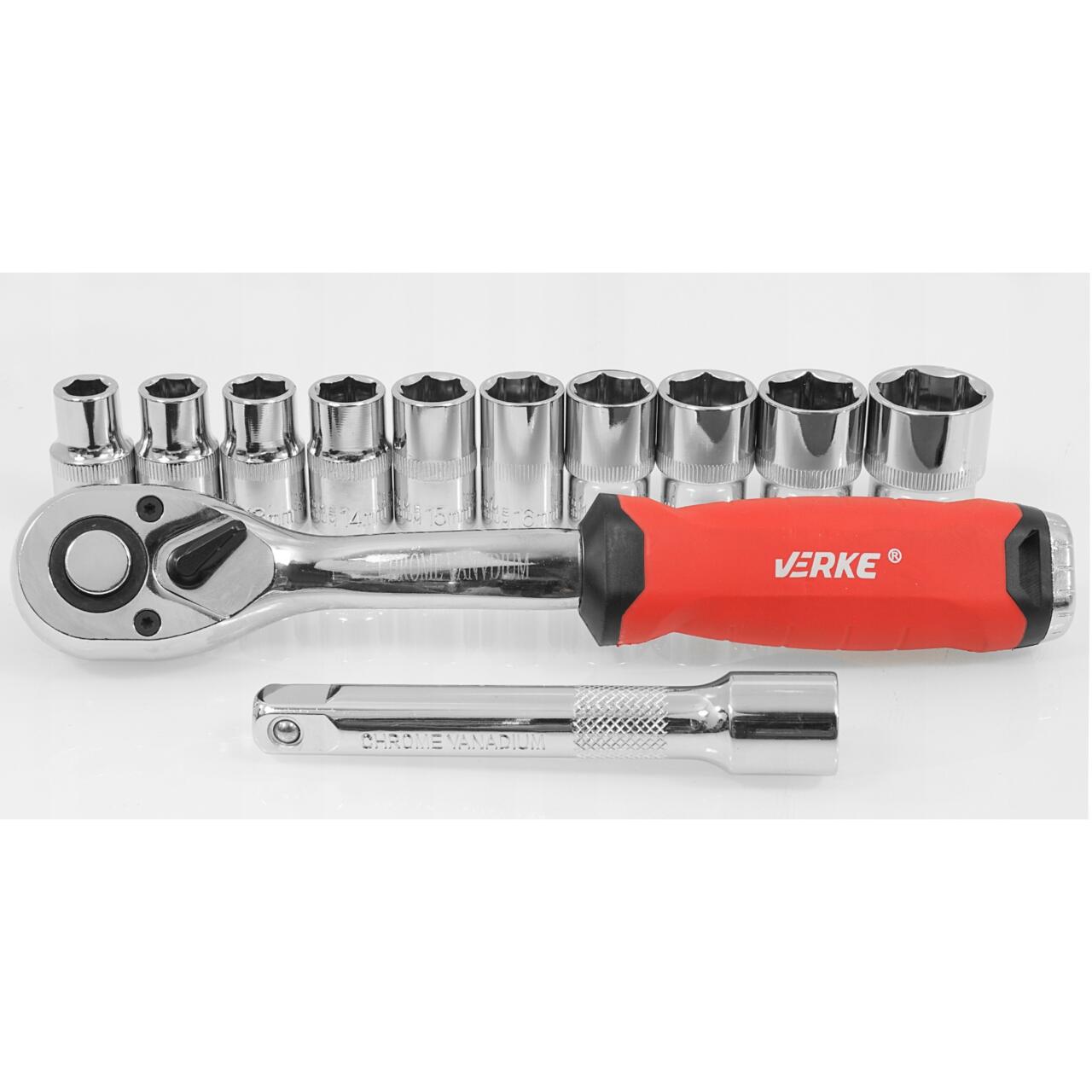 Set de scule de înaltă calitate. Cheile tubulare și dispozitivul de antrenare sunt realizate din oțel durabil CR-V crom-vanadiu pentru scule. Clichetul are 72 de dinti (cursa de lucru 5 grade).