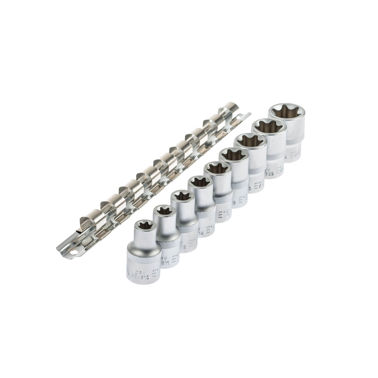 Set chei tubulare, E10-E24, 1/2" tip torx, 9 piese, Asta