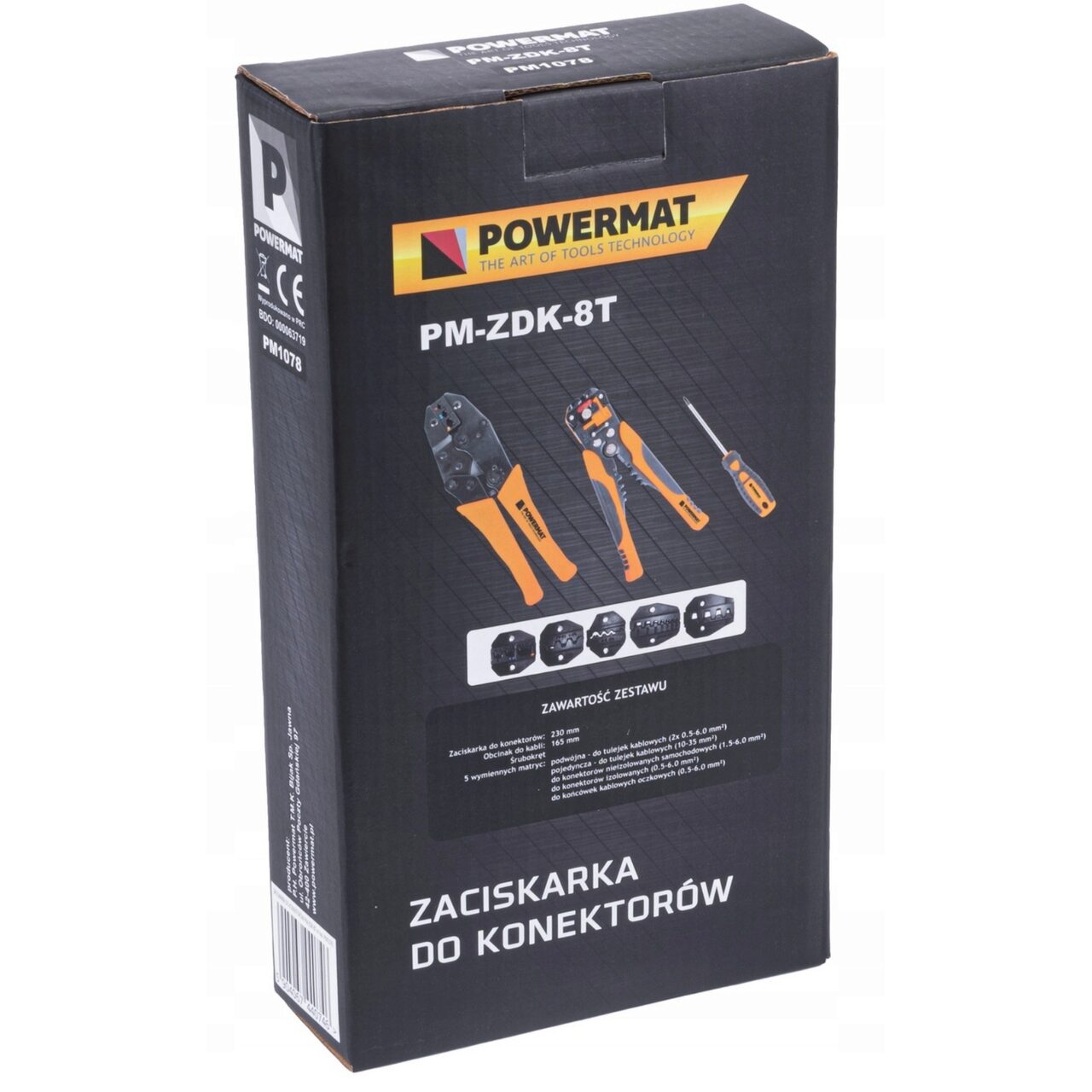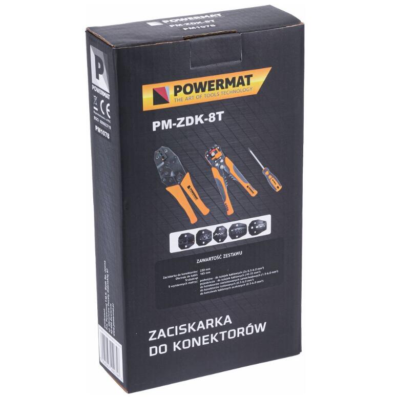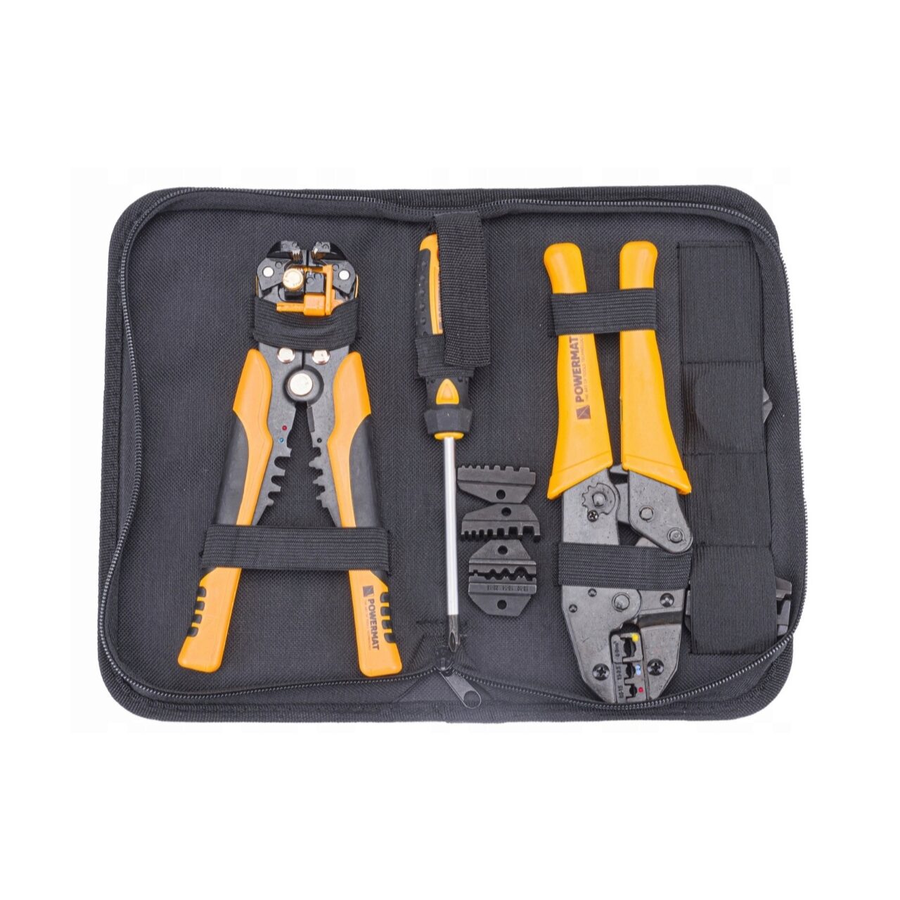 Setul include clești automati cu mecanism de clichet reglabil și cu matrițe interschimbabile potrivite pentru cinci tipuri de conectori electrotehnici. Se înlocuiesc matrițele prin deșurubarea a două șuruburi.