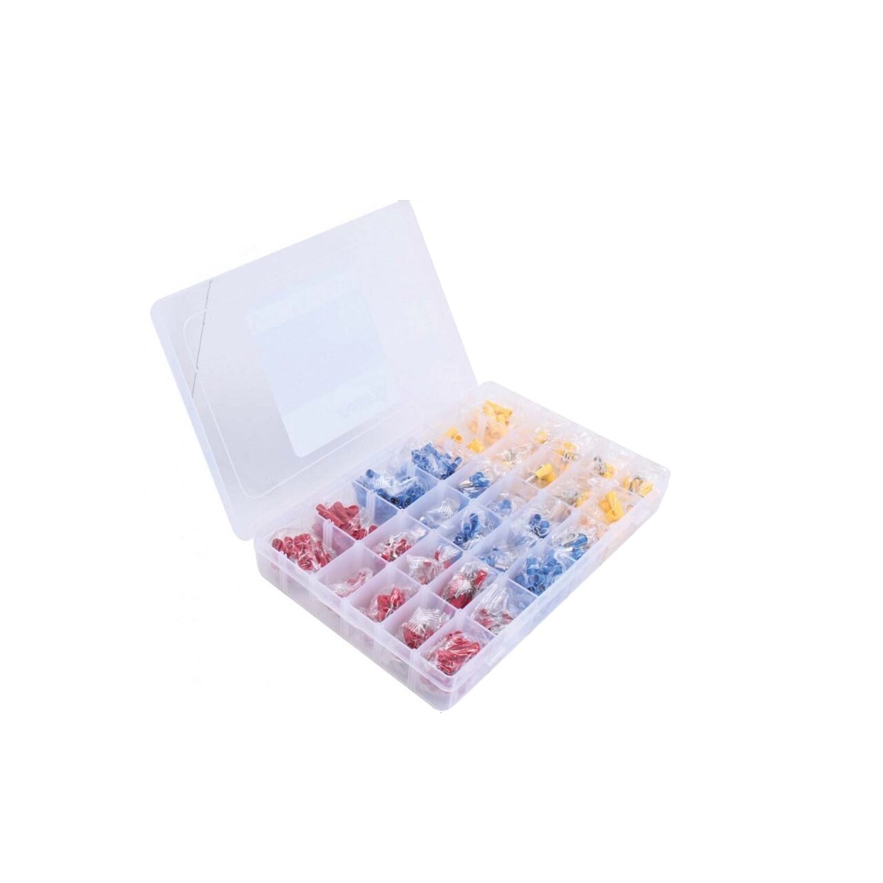 Set universal de conectori electrici în treizeci de dimensiuni uzuale. Setul include 480 de bucăți de conectori.